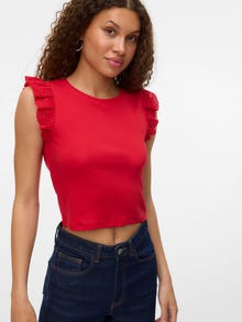 Tražite svoj novi svakodnevni omiljeni top? Imamo ideju. Ovaj će vrh lako postati vaš novi izbor u danima kada niste raspoloženi za nešto divlje, ali i dalje želite izgledati u trendu. Dodajte malo nakita za taj dodatni sjaj ili ga pojednostavite laganom jaknom. - Vrsta proizvoda : Vrh - Vrat : O-vrat - Rukav : Bez rukava (S/L) - Dodatni detalji : Volanima - Pristajati : Čvrsto prianjanje