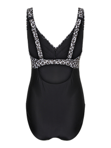 Opustite se uz bazen ili se okupajte u rastezljivim i raskošnim stilovima kupaćih kostima s puno mjesta za dvoje. - Vrsta proizvoda : Kupaći kostim - Trake : Podesive trake - Struk : Srednji struk - Dodatni detalji : Funkcija njege s povlačenjem prema dolje, Otvori natrag, Ruching detalj - Otisak : Ispis ponovljen po cijeloj površini proizvoda