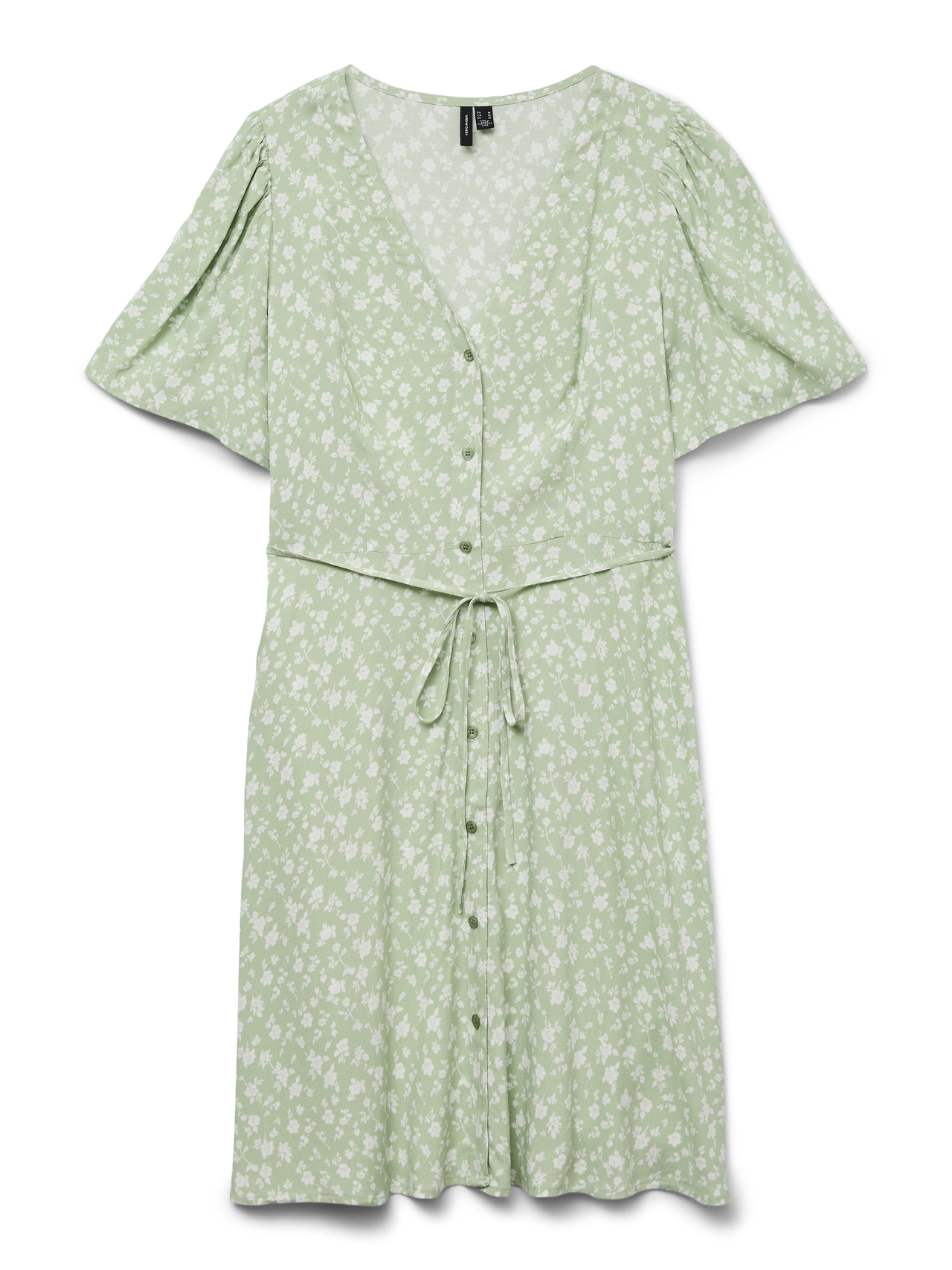 Ez a ruha tökéletes választás azokon a napokon, amikor nem tudod, hogy milyen összeállításhoz lenne kedved. Ez a ruha a kényelem és a stílus kombinációjának köszönhetően tökéletes választás a hétköznapokban. Az ízlésedtől függően felül vagy alul is viselheted. - Terméktípus : Ruha - Nyak : V-nyak - Ujj : Rövid ujjú - Ujjak : Bő ujj - Hossz/méret : Rövid - További részletek : Derékszíj, Gombos rész - Forma : Hagyományos