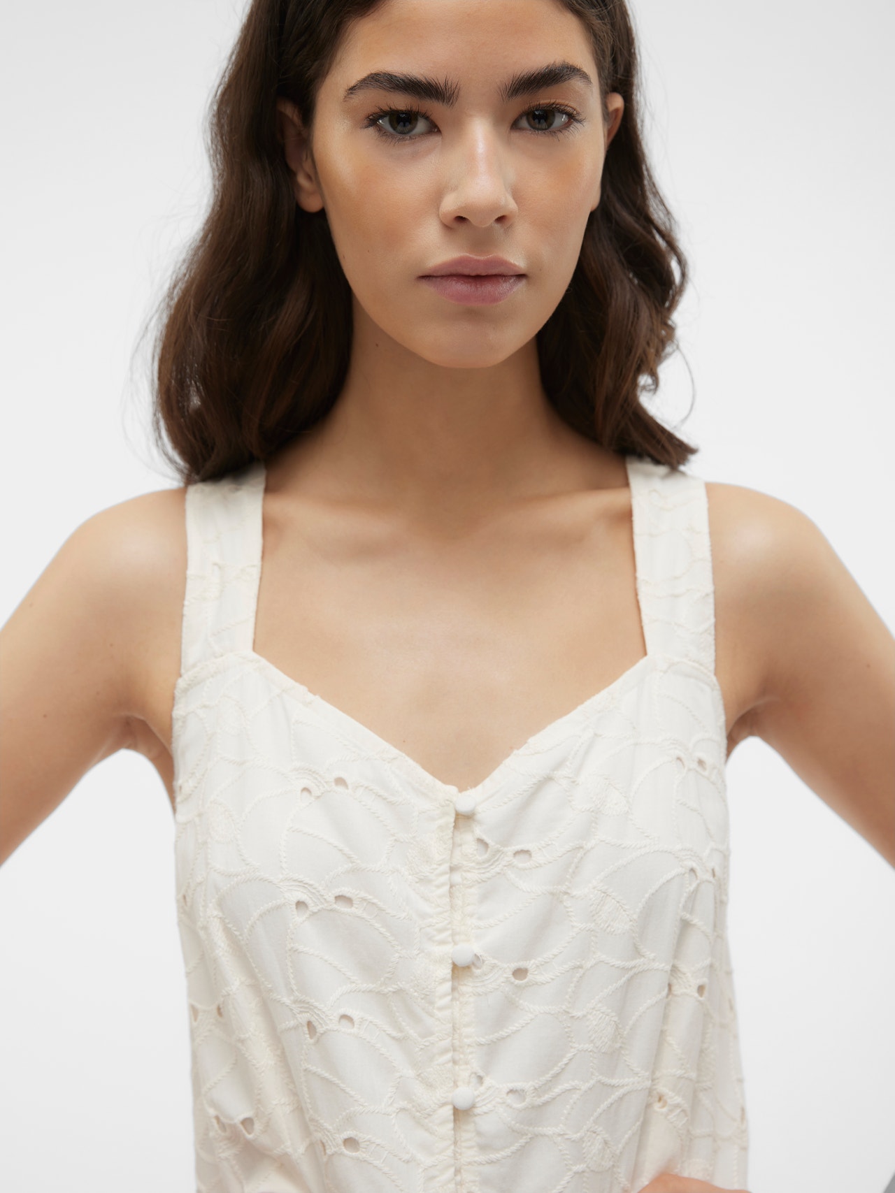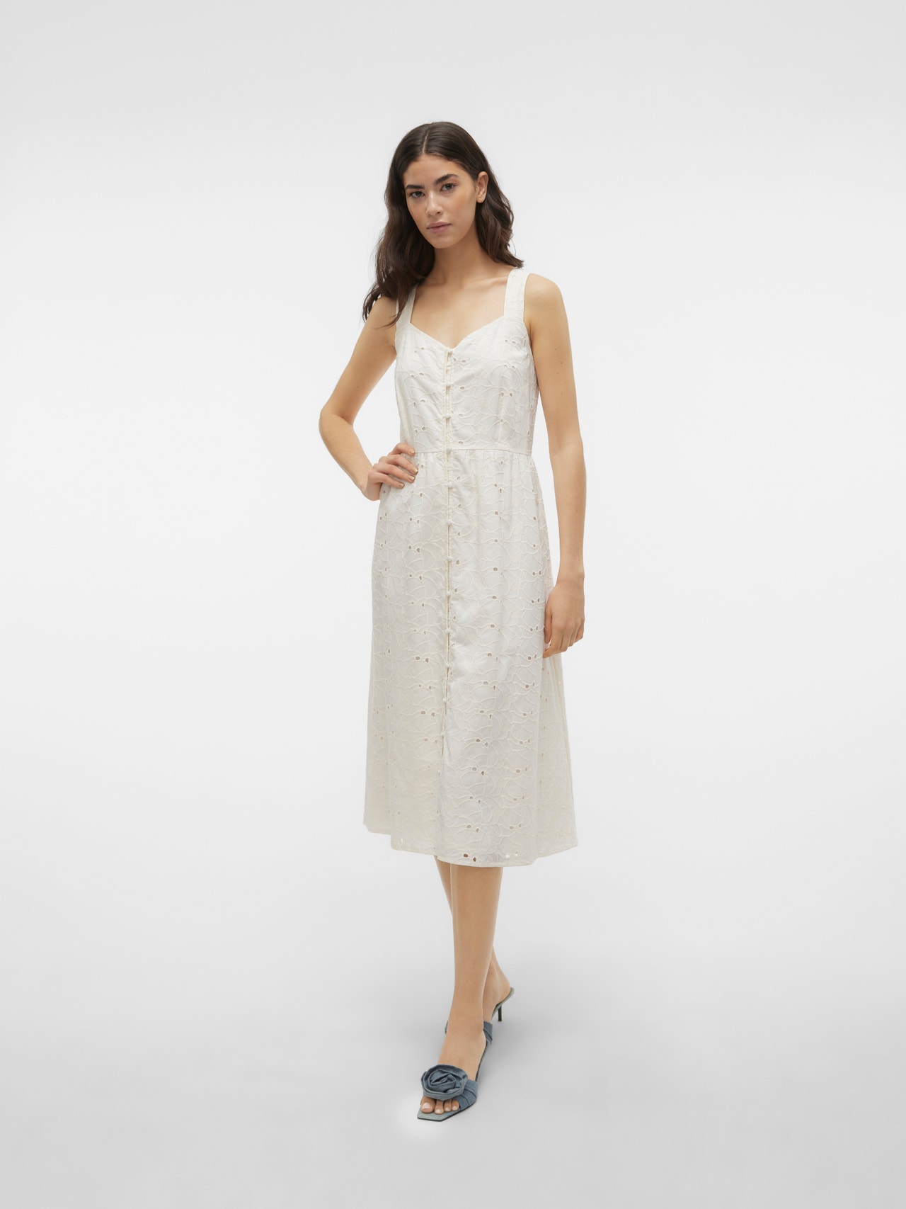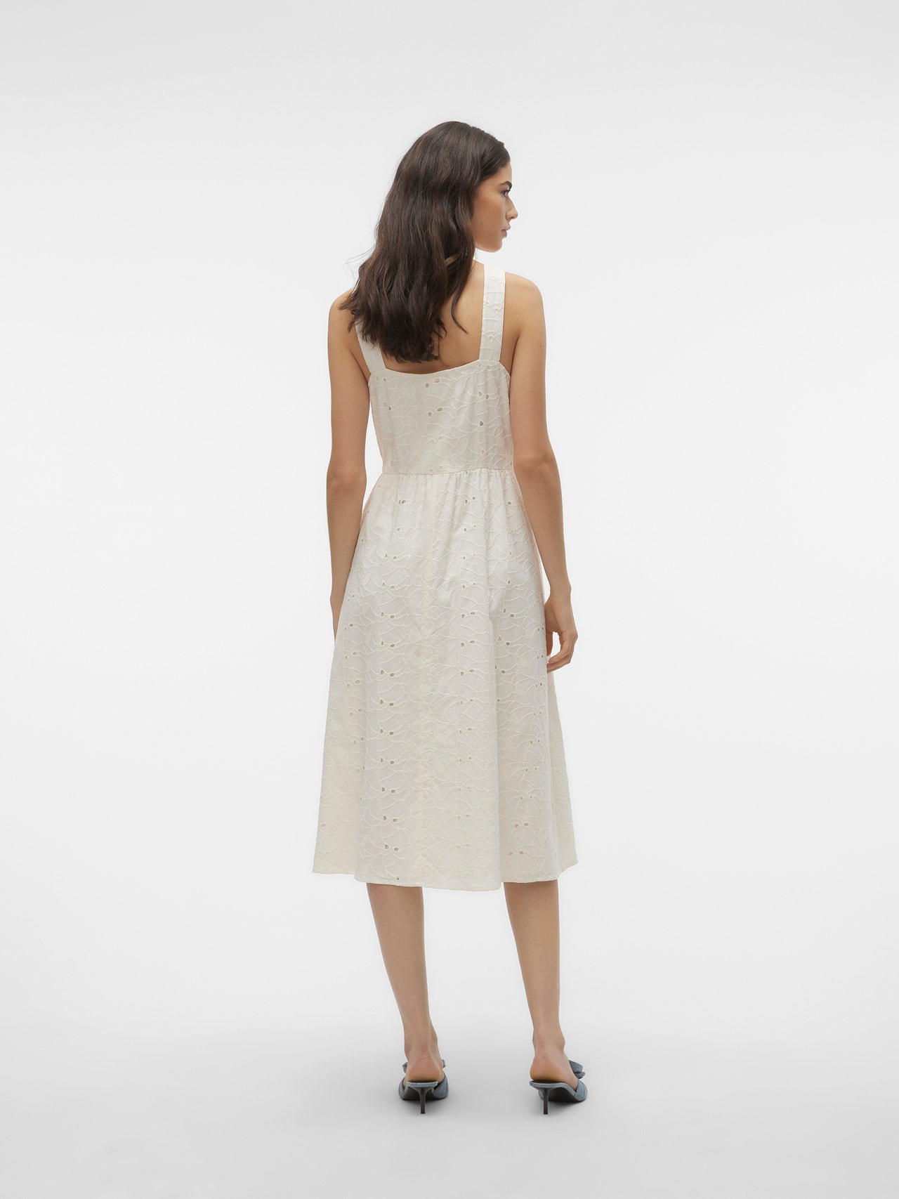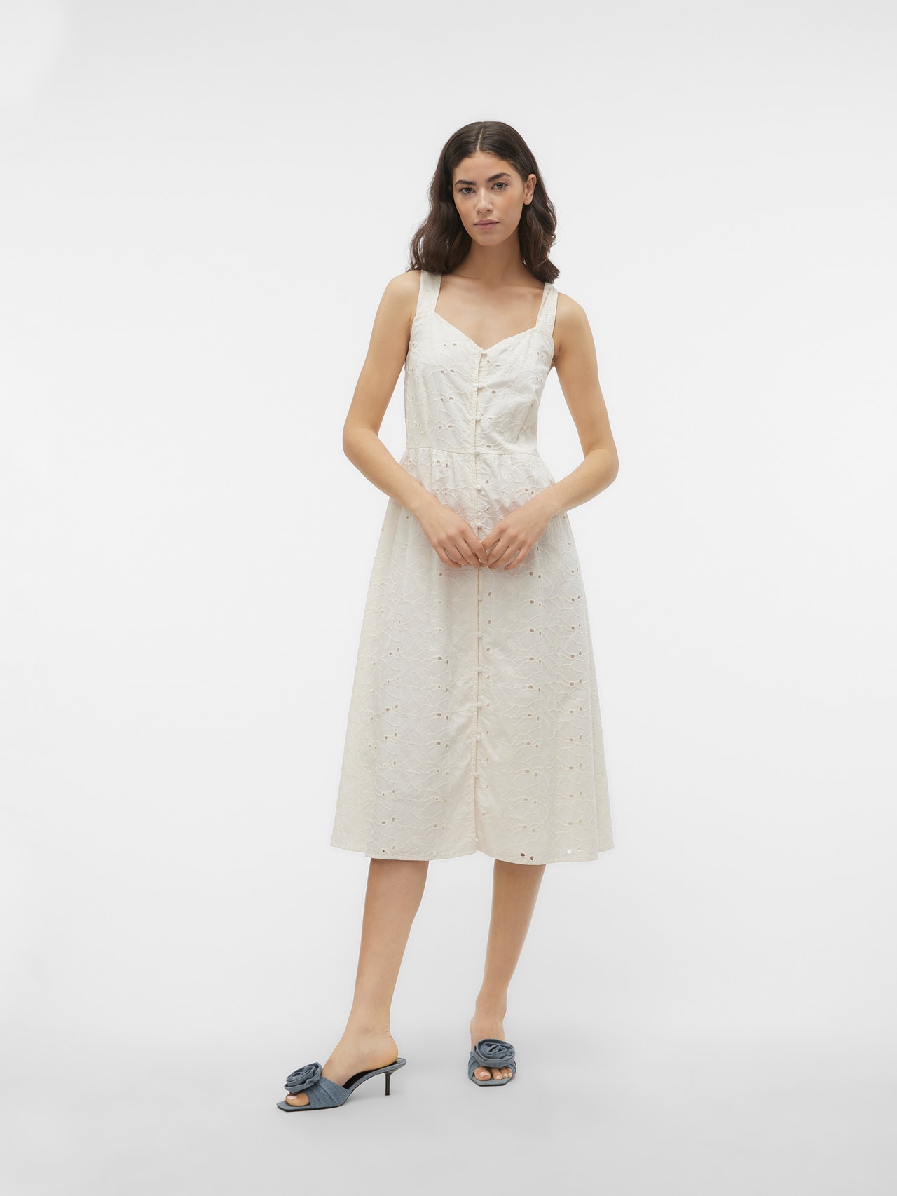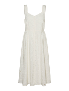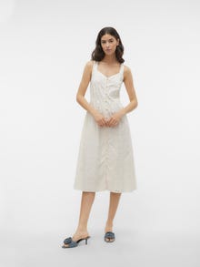 Néha köztes hosszúságra van szükség: ez a lenyűgöző midiruha pont ilyen. A térdig érő hosszának köszönhetően több évszakban is viselhető. Magassarkú csizmával vagy balerinacipővel kombinálva kifinomult megjelenést biztosít, de ha lazább, városi stílusra vágysz, válassz hozzá egy sportcipőt. - Terméktípus : Ruha - Nyak : V-nyak - Ujj : Ujjatlan - Lezárás : Gombos záródás - Hossz/méret : Térdig érő - Bélés : Pamut jersey bélés a kényelemért és a puha tapintásért - Testalkat : - Forma : Hagyományos