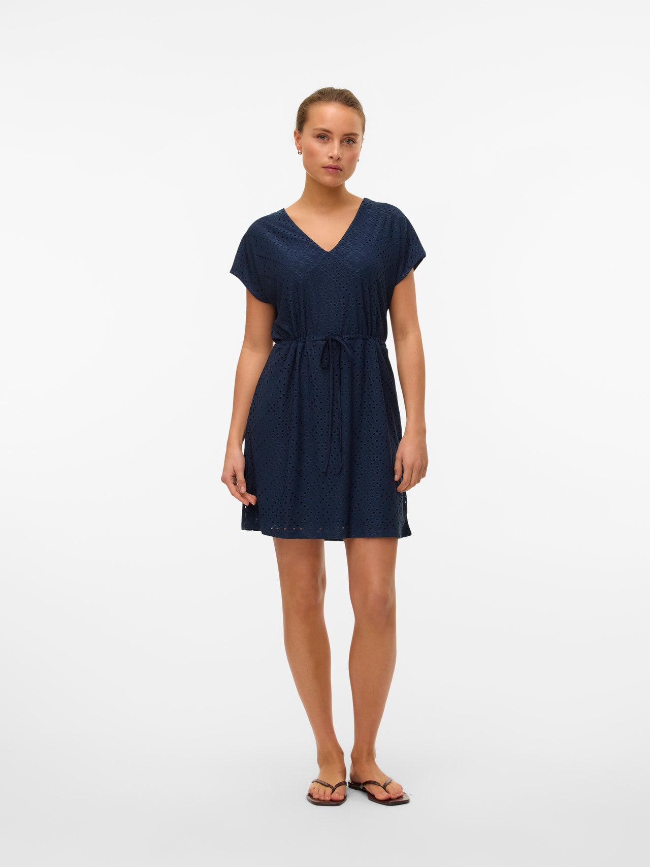 Fejezd ki a stílusod egy gyönyörű miniruhával. Ez a ruha magassarkú cipővel és a kedvenc kiegészítőiddel kombinálva tökéletes ünnepi megjelenést biztosít. Nem számít, hogy a nyári napsütést élvezed, vagy táncolni mész, egy miniruha mindig nagyszerű választás. - Terméktípus : Ruha - Nyak : V-nyak - Ujj : Rövid ujjú - Hossz/méret : Rövid - Bélés : Poliészter bélés az átlátszatlan hatásért - További részletek : Állítható derékrész, Hímzés - Forma : Hagyományos