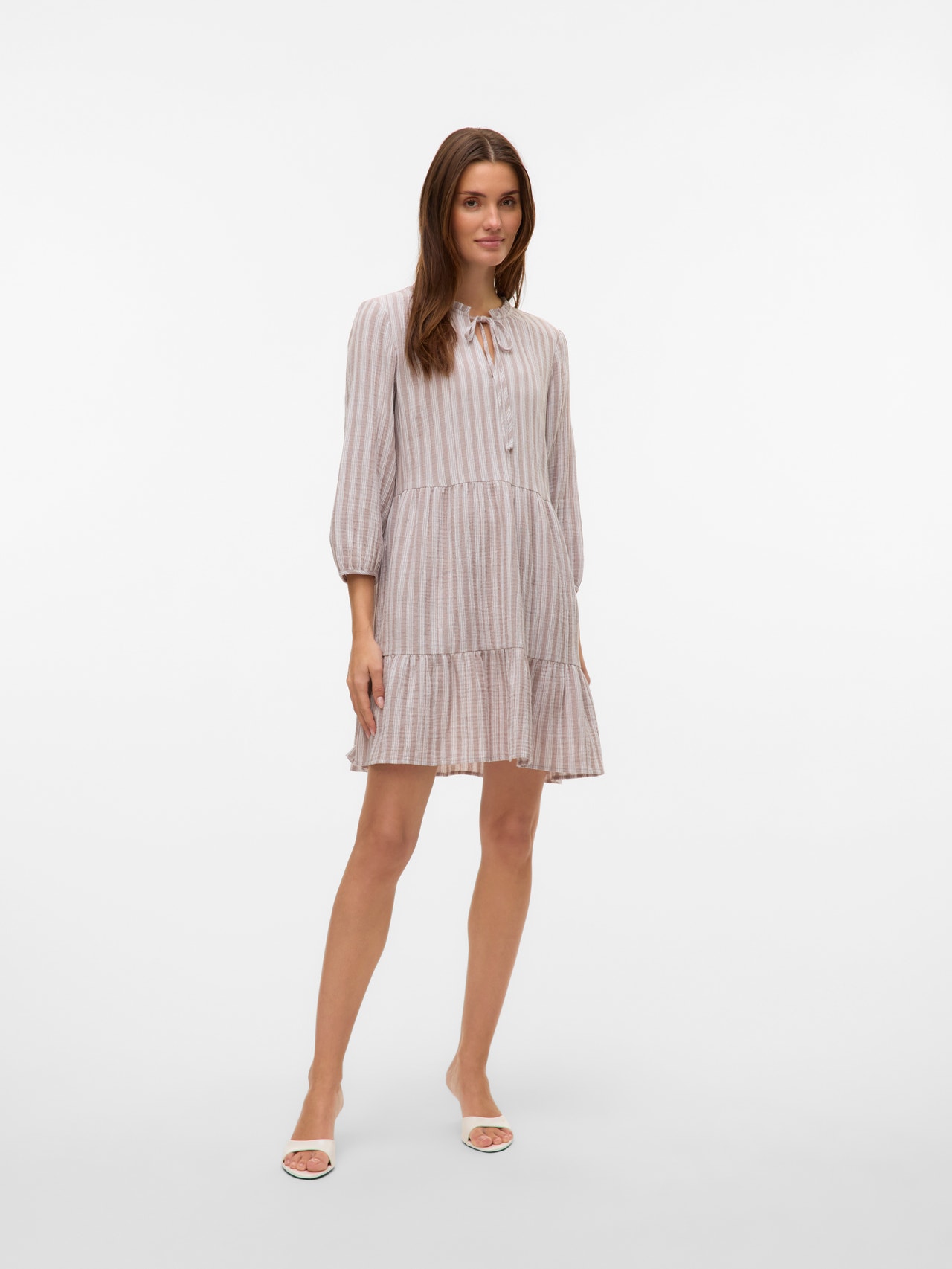 Ez a ruha tökéletes választás azokon a napokon, amikor nem tudod, hogy milyen összeállításhoz lenne kedved. Ez a ruha a kényelem és a stílus kombinációjának köszönhetően tökéletes választás a hétköznapokban. Az ízlésedtől függően felül vagy alul is viselheted. - Terméktípus : Ruha - Nyak : V-nyak - Ujj : Ujjatlan - Hajtóka : Gumis mandzsetta - További részletek : Fodrok, Kötött rész - Forma : Laza