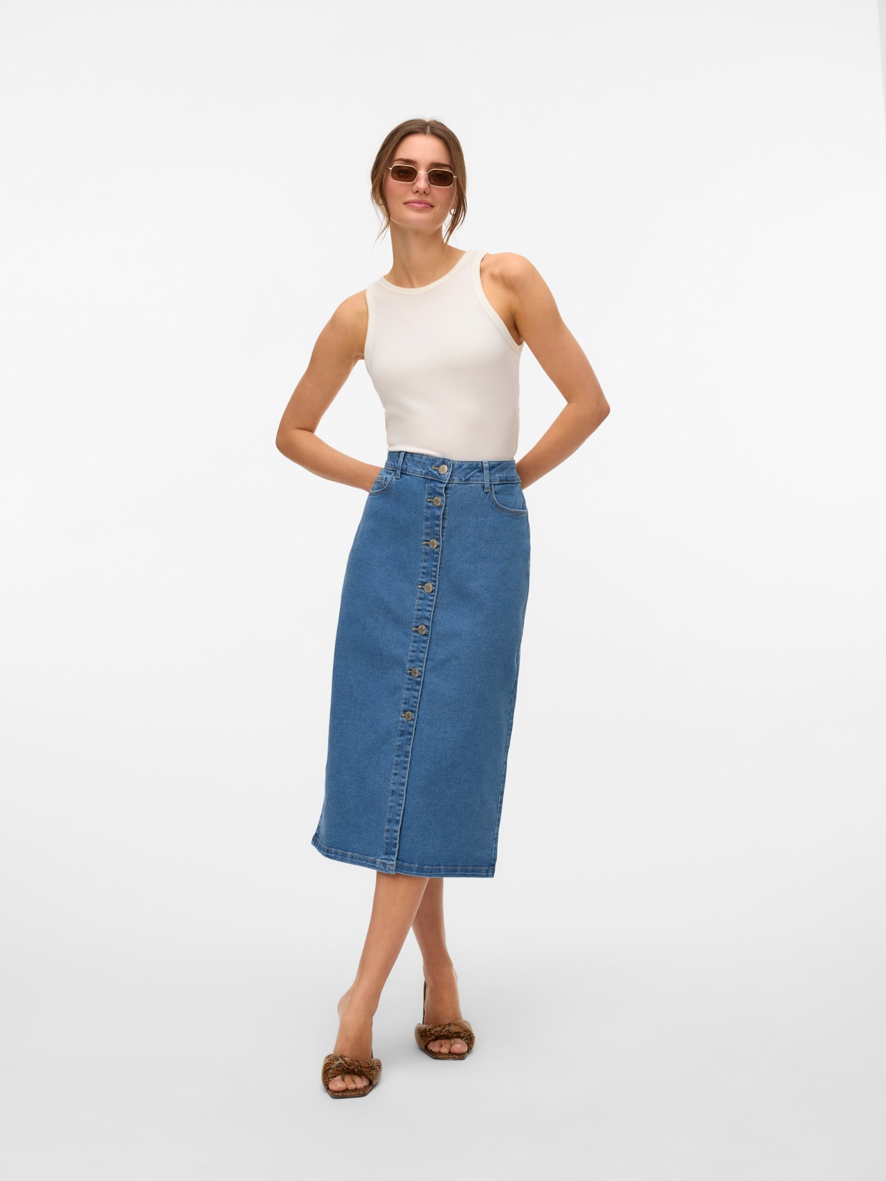 A szoknya rendkívül nőies viselet, és egy gyönyörű szoknya egyik ruhatárból sem hiányozhat. Ha lenyűgöző megjelenésre vágysz, kombináld egy egyszerű pólóval vagy egy kivágott felsővel. Ha hideg van, válassz hozzá egy harisnyát, egy csizmát és egy vagány blézert, ha melegebb az idő, viseld nyitott lábbelivel. - Terméktípus : Szoknya - Lezárás : Gombos záródás - Zsebek : Elülső zsebek - Derék : Közepes derék
