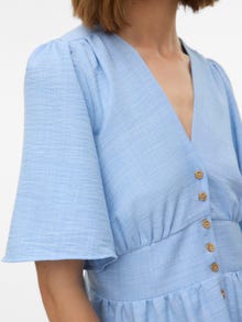 Ez a ruha tökéletes választás azokon a napokon, amikor nem tudod, hogy milyen összeállításhoz lenne kedved. Ez a ruha a kényelem és a stílus kombinációjának köszönhetően tökéletes választás a hétköznapokban. Az ízlésedtől függően felül vagy alul is viselheted. - Terméktípus : Ruha - Nyak : V-nyak - Ujj : 2/4-es ujjú - Lezárás : Gombos záródás - Hossz/méret : Rövid - Forma : Hagyományos