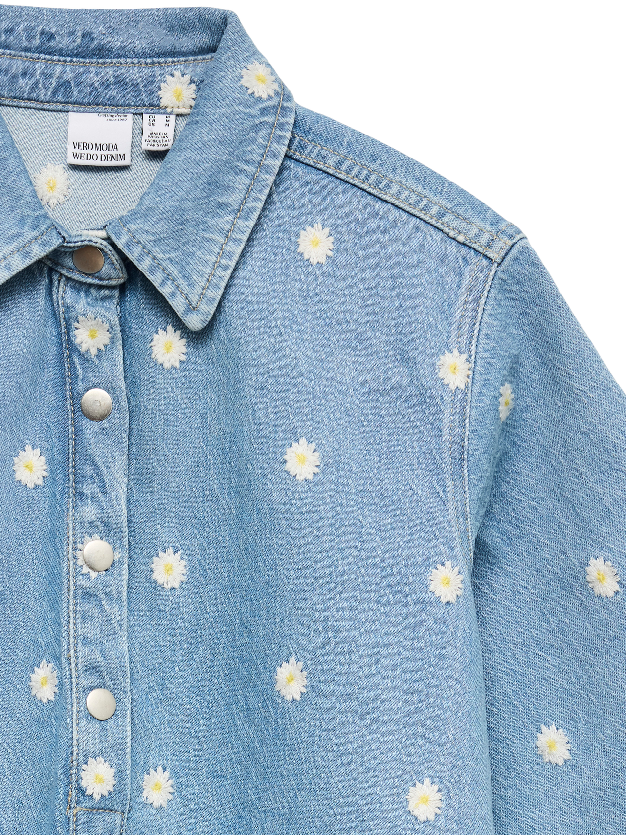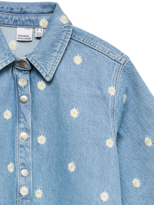 Néha köztes hosszúságra van szükség: ez a lenyűgöző midiruha pont ilyen. A térdig érő hosszának köszönhetően több évszakban is viselhető. Magassarkú csizmával vagy balerinacipővel kombinálva kifinomult megjelenést biztosít, de ha lazább, városi stílusra vágysz, válassz hozzá egy sportcipőt. - Terméktípus : Farmerruha - Nyak : Inggallér - Ujj : Rövid ujjú - Lezárás : Patentos záródás - Hossz/méret : Rövid - További részletek : Hímzés - Mosás/befejezés : Kőmosás a fakó, kopott megjelenésért - Forma : Széles