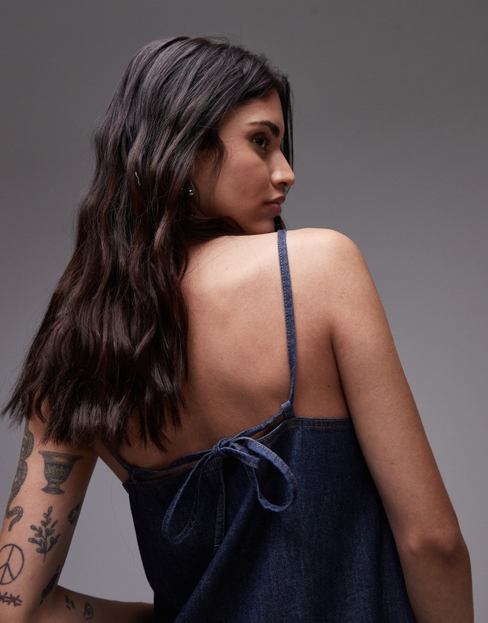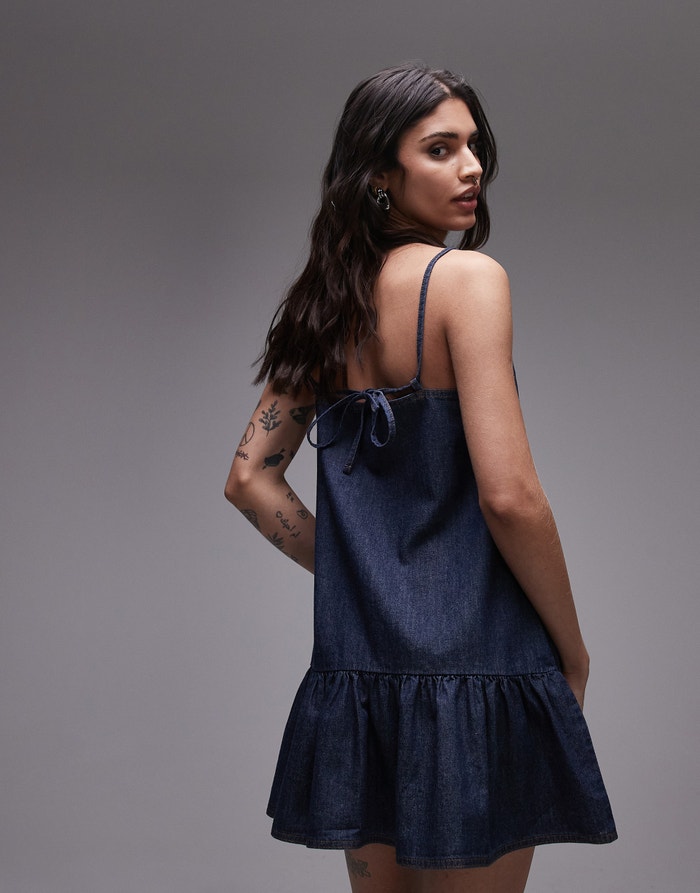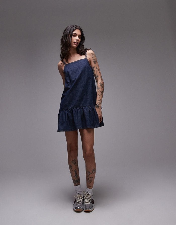 Topshop denim mini cami dress in raw look indigo - MBLUE