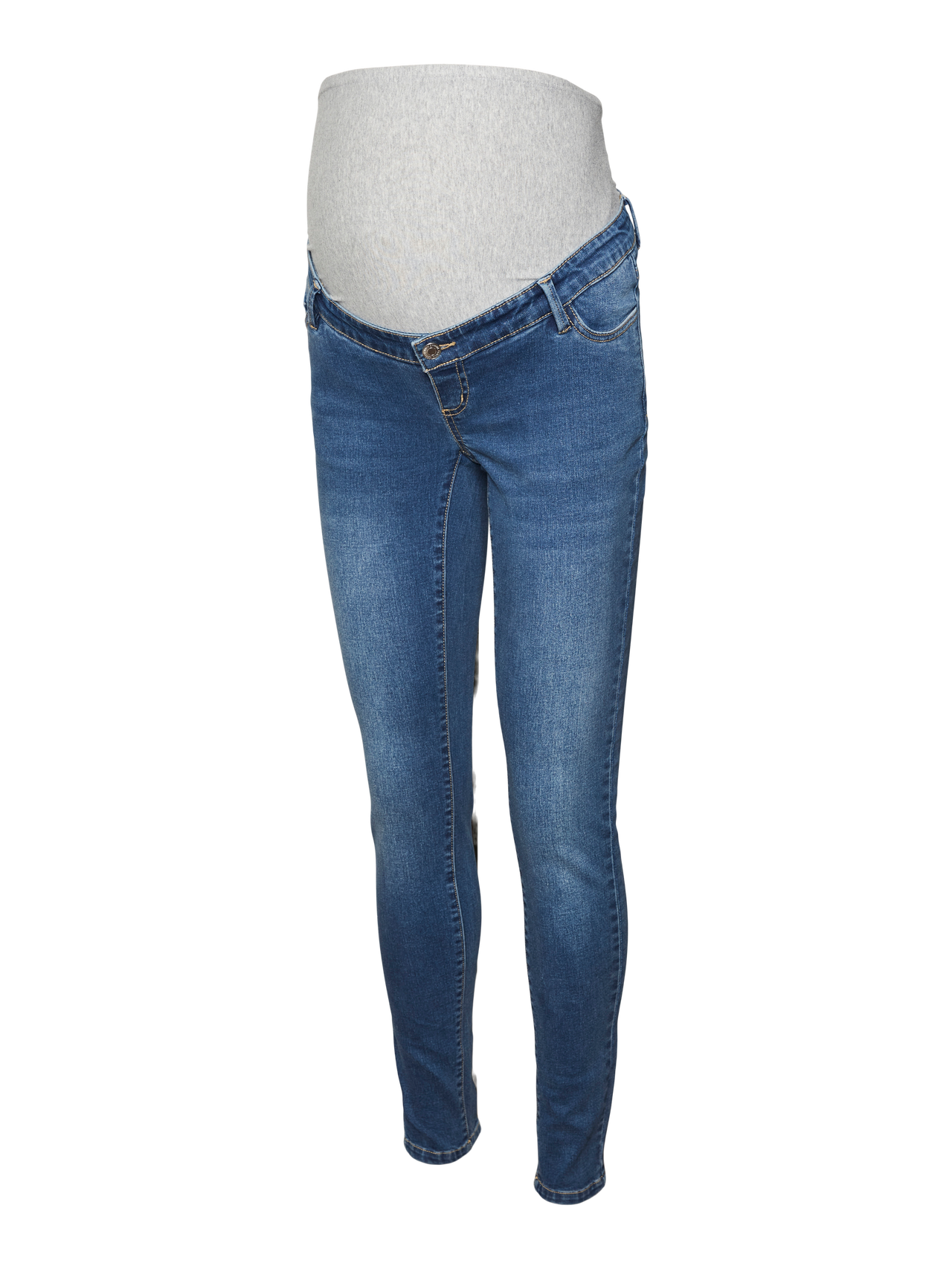 - Mid-wash maternity slim-fit jeans - Supportive bump band - Faux fly with button fastening - 5-pocket design with belt loops - Faded details at thighs - Designed to fit through all stages of pregnancy - Just select your usual size - A classic silhouette with endless styling potential