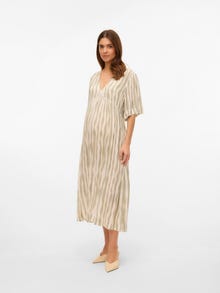 Hagyományos V-nyak Bő ujj Midiruha