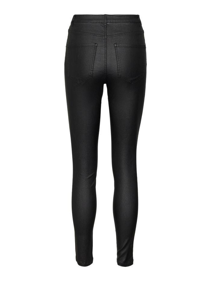 - Coated, skinny jeans.