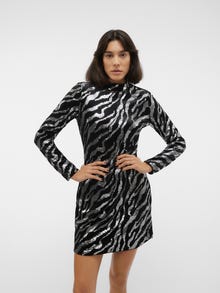 Ogni festa merita il vestito giusto. Questo incantevole vestito ti metterà subito dell'umore giusto per la tua prossima festa. Abbinalo a un paio di tacchi e ai tuoi accessori preferiti per ottenere uno spettacolare look da festa. - Tipologia di prodotto : Vestito da party - Collo : Paricollo - Manica : Maniche lunghe - Lunghezza/taglia : Corto - Vestibilità : Regular Fit