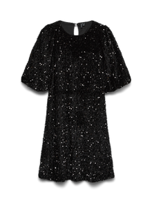 Ogni festa merita il vestito giusto. Questo incantevole vestito ti metterà subito dell'umore giusto per la tua prossima festa. Abbinalo a un paio di tacchi e ai tuoi accessori preferiti per ottenere uno spettacolare look da festa. - Tipologia di prodotto : Vestito da party - Collo : Paricollo - Manica : Maniche 2/4 - Vestibilità : Loose Fit - Stile di vita : Partito