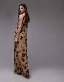 Topshop built up double layered cowl neck maxi dress in buttermilk floral - YELLOW