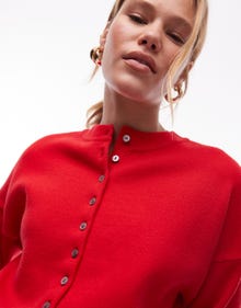 Topshop knitted compact fitted waist cardi in red - RED