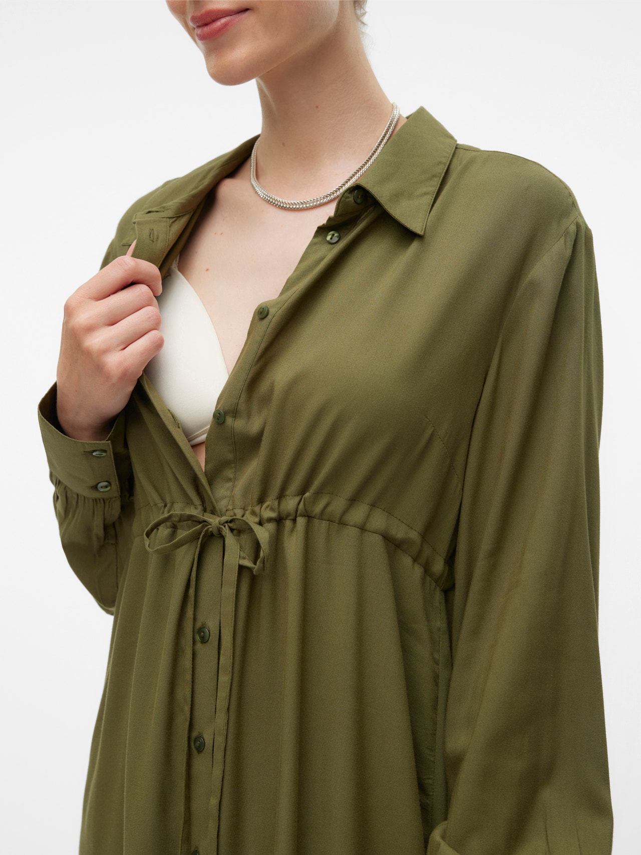 - Dettagli : Cintura in vita, Dettaglio bottone, Linea di taglio sopra il pancione, Pinces, Allattamento grazie a chiusura con bottone o cerniera, Dettaglio piega