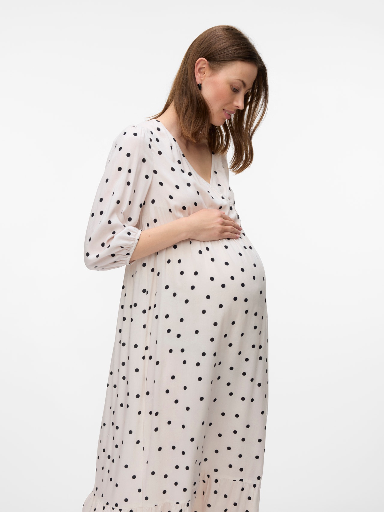- Dettagli : Orlo stondato, Linea di taglio sopra il pancione, Pinces, Vita elasticizzata, Strato di allattamento sotto un effetto a incrocio