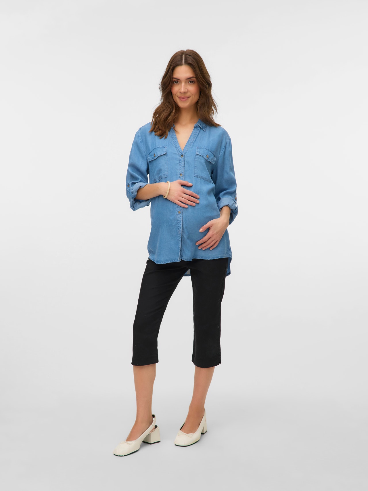 Entra nella stagione dei nuovi inizi con i morbidi e meravigliosi modelli primaverili che assicurano una perfetta vestibilità per il tuo pancione che cresce e aggiungono un tocco di colore e leggerezza a qualsiasi outfit. - Tipologia di prodotto : Pantaloni - Fianchi : Vita alta - Lunghezza/taglia : Cropped - Dettagli : Elastico interno in vita, Fascia elastica sul pancione per un comfort e un supporto maggiori - Vestibilità : Regular Fit