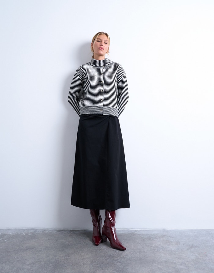 Ogni guardaroba ha bisogno di un cardigan: è il mix perfetto di comfort e chic. Per un look facile da indossare tutti i giorni, sovrapponilo a una maglietta basic con jeans a botte. Vuoi un'atmosfera più femminile? Abbotta uno stile elegante e abbinalo a una maxi gonna voluminosa e ballerine classiche.