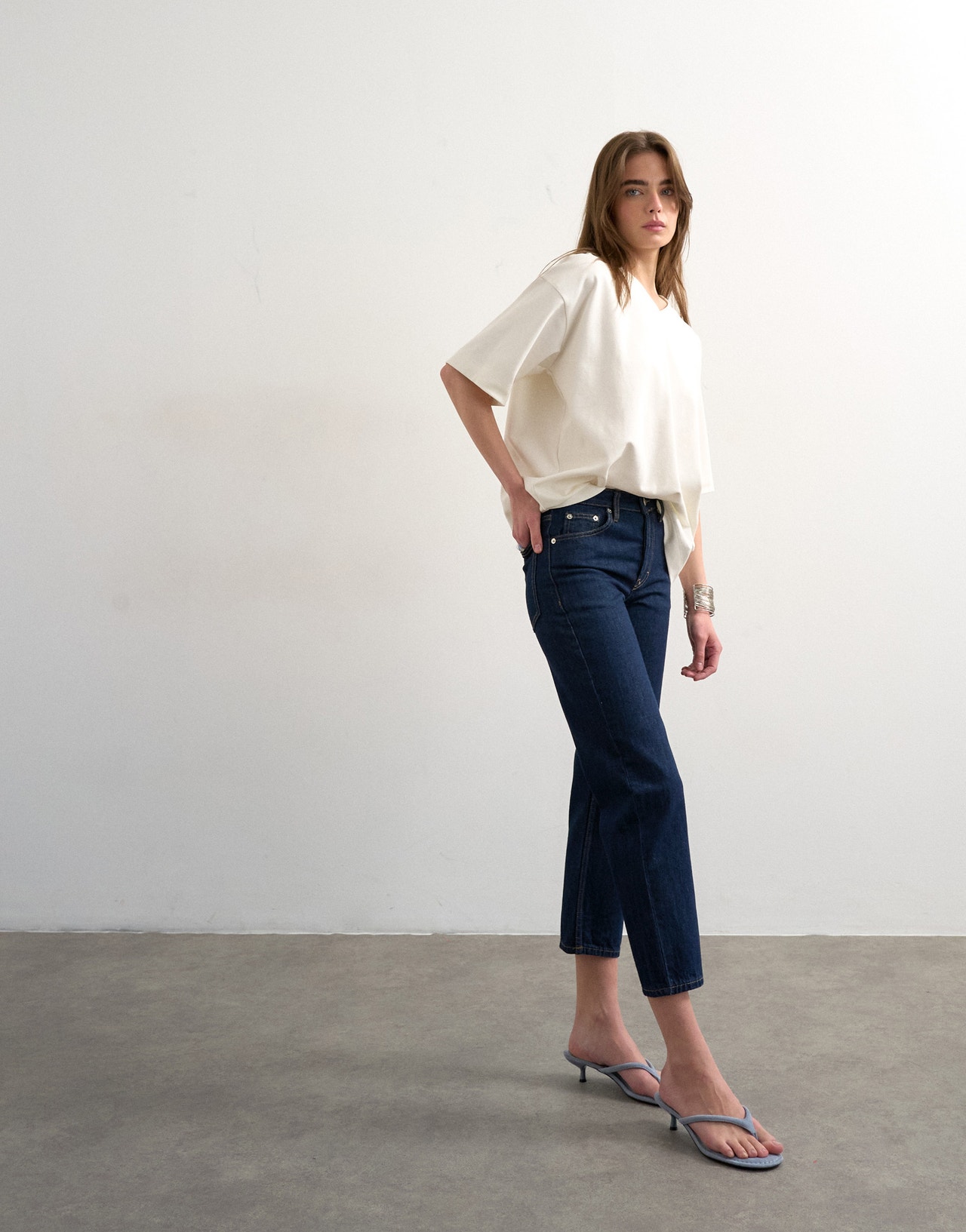 I jeans dalla vestibilità dritta sono un vero classico: versatili e facili da abbinare. Abbinali a una giacca da motociclista spigolosa o a un cappotto senza tempo. Vestili con un blazer elegante per il lavoro o mantienili casual per il fine settimana con una maglietta oversize e infradito.