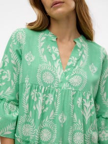 Denne kjolen er det perfekte valget til dager når det virker umulig å sette sammen et antrekk. Kombinasjonen av komfort og stil gjør denne kjolen til en hverdagsfavoritt. Style den opp eller ned avhengig av smak. - Produkttype : Kjole - Hals : V-hals - Erme : 3/4 ermer - Ermer : Vide ermer - Lengde/størrelse : Kort - Passform : Loose fit