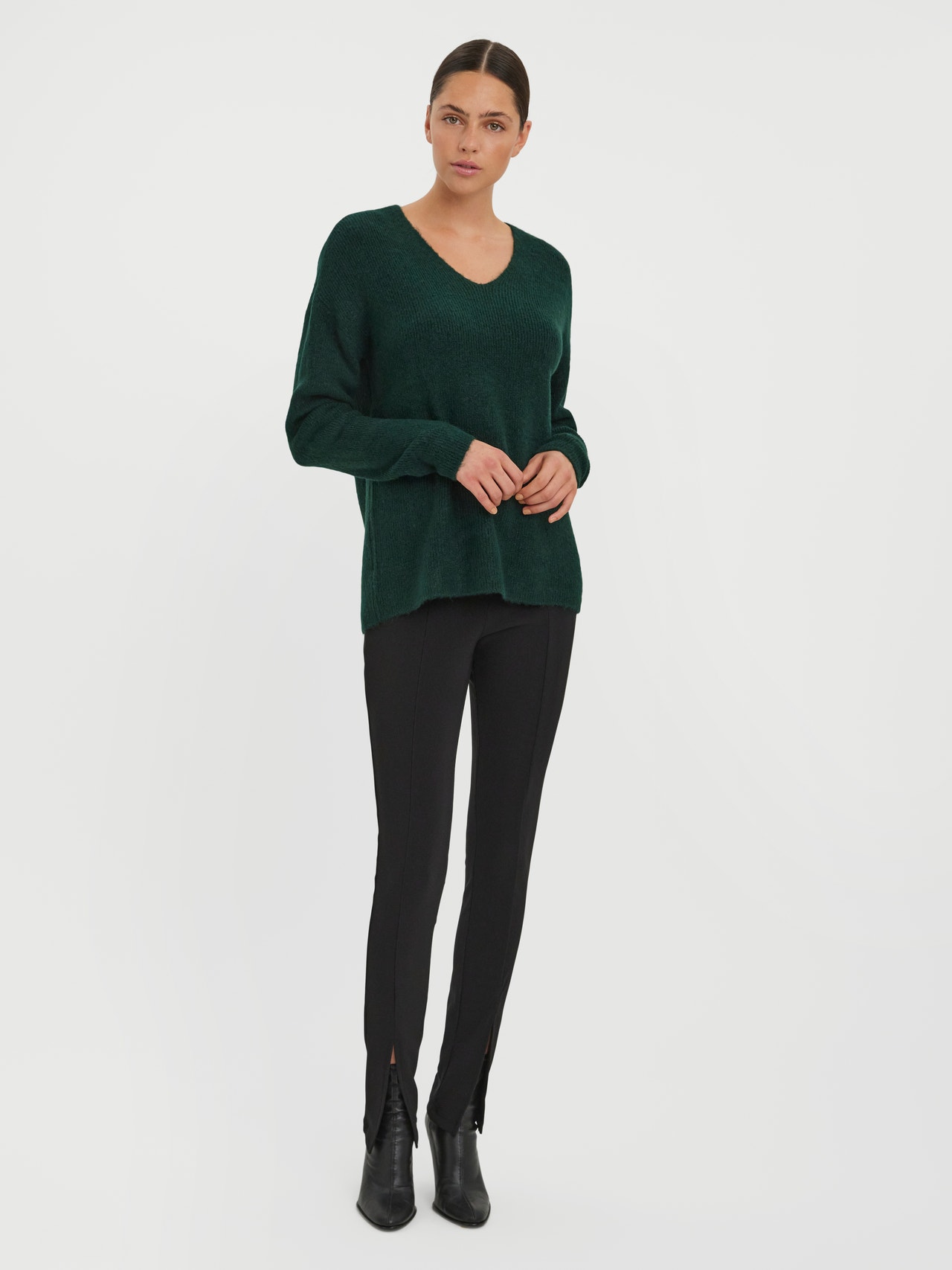 - Hals : V-hals