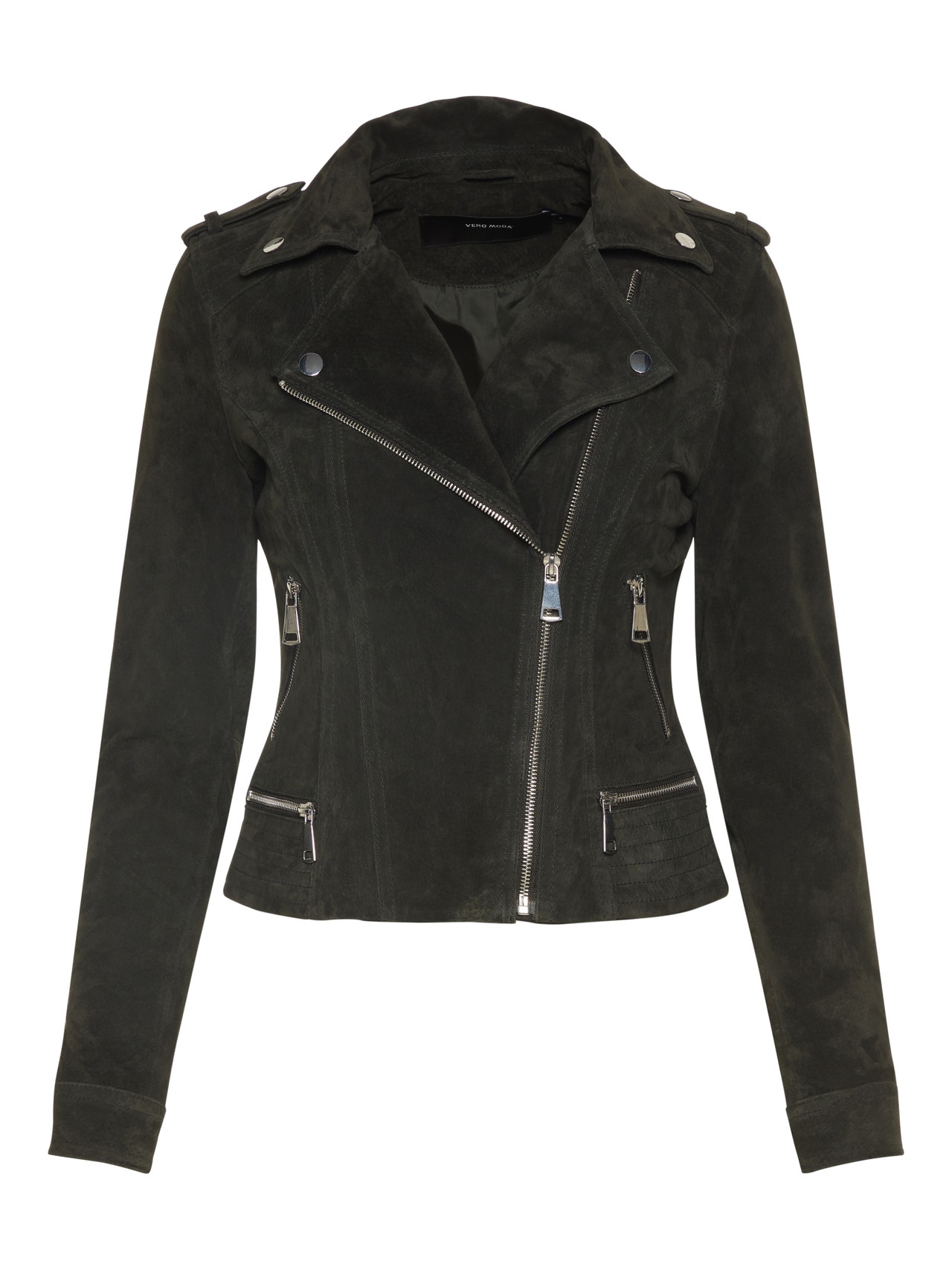 - Produkttype : Jakke - Hals : Biker-krage - Erme : Lange ermer - Stropper : Stroppdetalj - Lukking : Glidelås med trykknapp - Lommer : Brystlomme med glidelås - Fôr : Polyesterfôr for en behagelig følelse