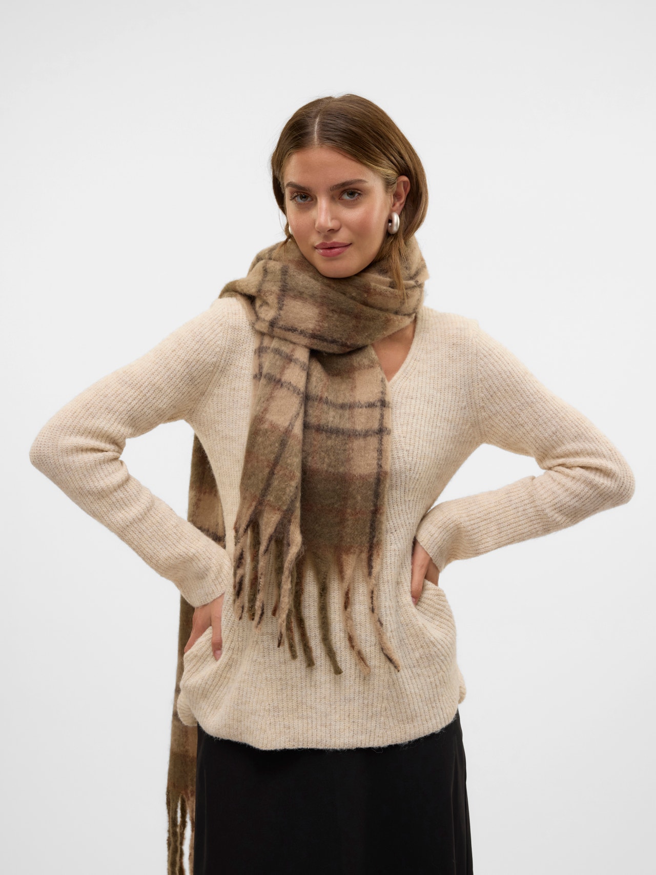 Dette skjerfet vil sannsynligvis bli din favoritt i de kalde månedene. Det klassiske designet løfter enkelt yttertøyslooken din og sikrer en look som er stilig, varm og komfortabel på samme tid. - Produkttype : Skjerf - Detaljer : Frynser - Bredde : 35.0 - Lengde : 180.0