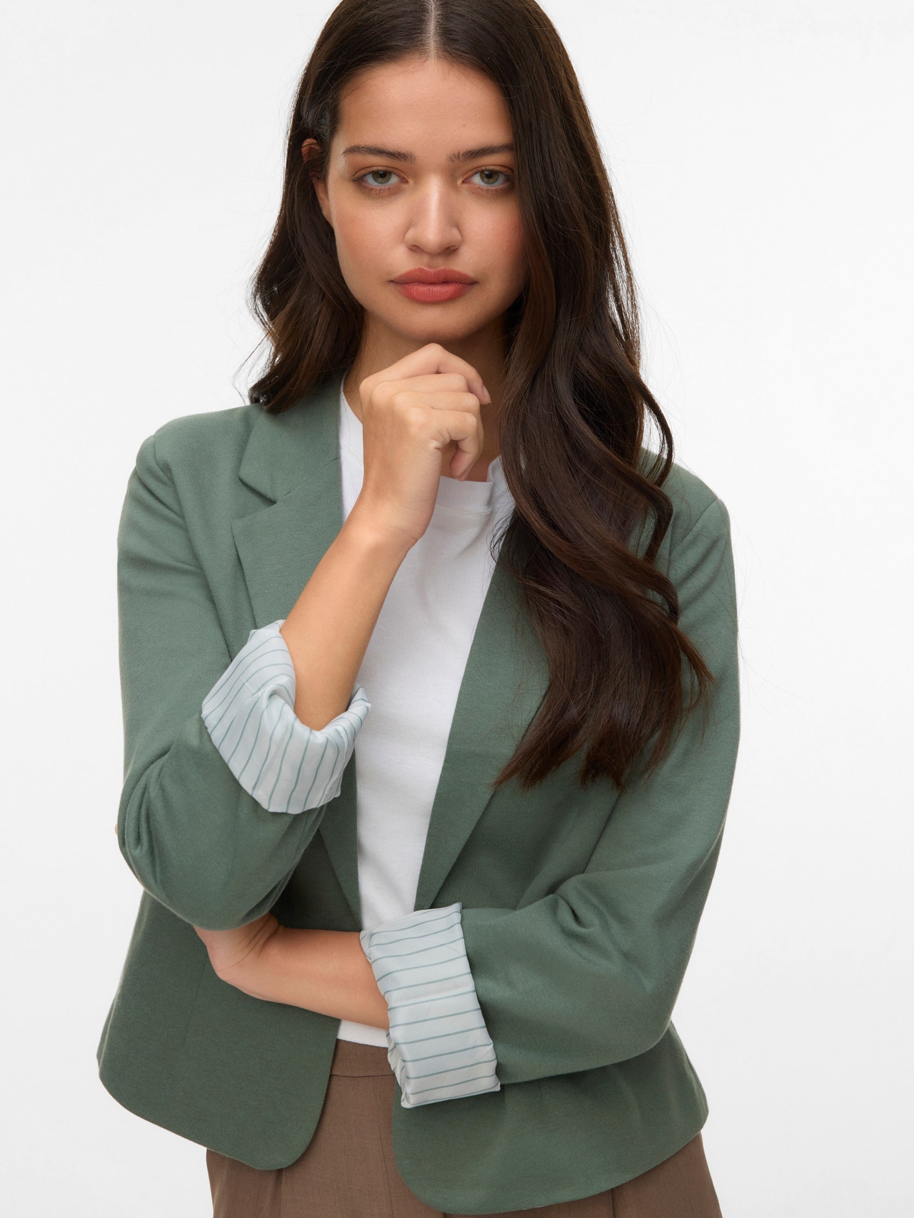 Usikker på hva du skal ha på deg? Sleng på deg en blazer. Denne blazeren er din stilige go-to. Selv når du bruker den over en ensfarget T-skjorte, tilfører blazeren alltid sin egen eleganse og stil. Style med en jeans med wide fit og høye hæler for en oppgradert hverdagslook.