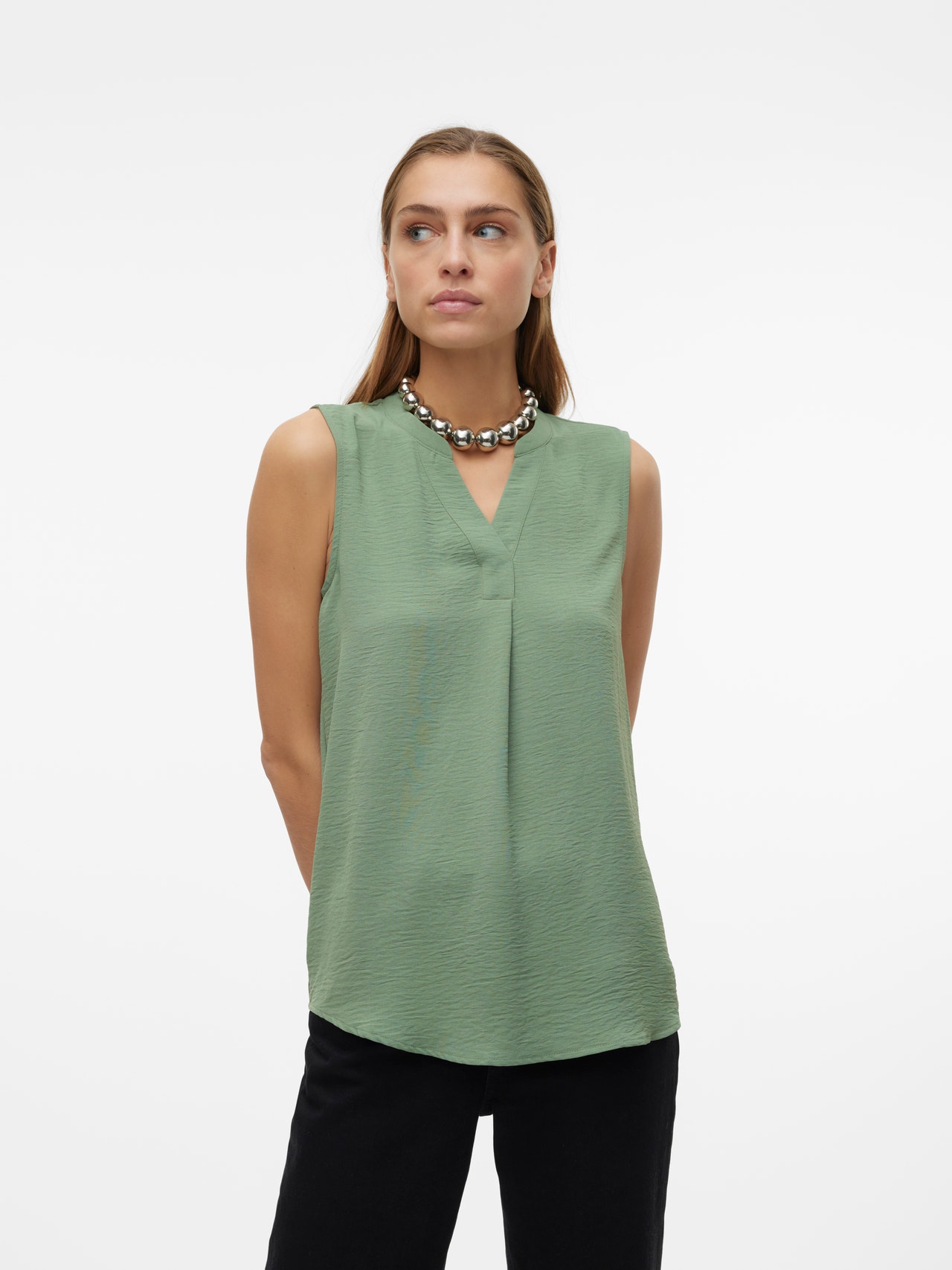 Basics er en uunværlig del av nesten alle garderober der ute. Våre basic-topper binder et antrekk sammen, og denne toppen er intet unntak. Bruk med en skjortejakke over, og kombiner med et par avslappede mom-jeans og chunky boots, og du har en avslappet og kul hverdagslook.
