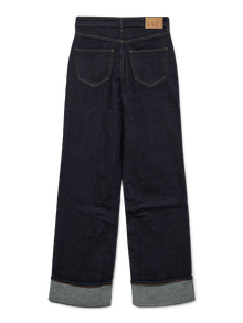 Volum er nøkkelen, og denne jeansen med wide fit beviser nettopp det. Vidden gir antrekket ditt et avslappet og baggy preg. Style med en topp i slim fit for å understreke midjen din, eller ta den helt ut med en oversized skjorte for å skape en løs og komfortabel look.. - Produkttype : Jeans med wide fit - Lukking : Knapp og glidelås - Lommer : Baklommer, Forlommer - Høyde til midje : Høyt snitt - Passform : Wide Leg Fit