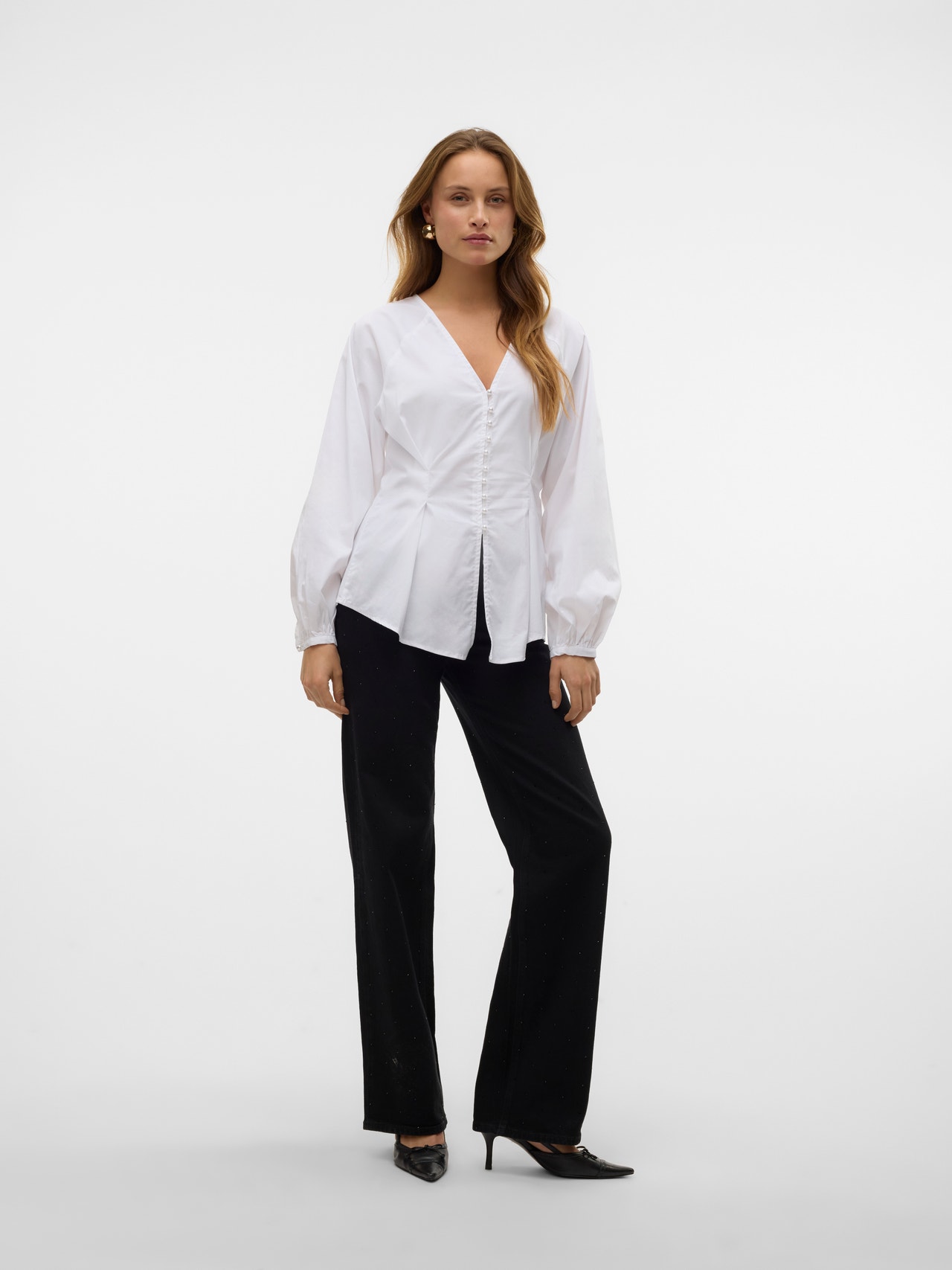 Denne fantastiske skjorten er enkel å style opp og ned, avhengig av anledningen, men vil definitivt gi deg et feminint preg. Gå for baggy jeans og høye hæler når du styler – det vil gi deg en avslappet og elegant look. - Produkttype : Skjorte - Hals : Cut away-krage - Erme : Lange ermer - Ermer : Ballongermer - Mansjetter : Elastiske mansjetter - Lukking : Knappelukking - Detaljer : Knappedetalj - Passform : Tight Fit