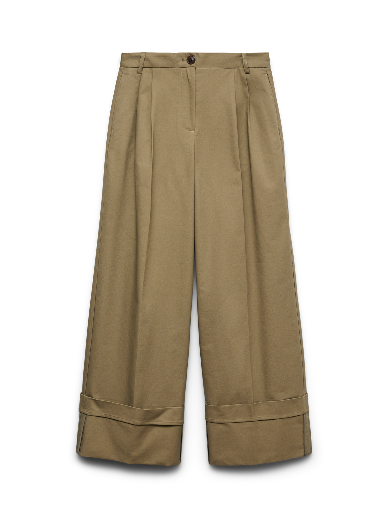 Enten du går for en kontorlook eller styler med sneakers og en ensfarget T-skjorte, er figursydde bukser din beste venn. Allsidige å style og med en svært flatterende passform, hva mer kan du ønske deg?. - Produkttype : Figursydde bukser - Lukking : Knapp og glidelås - Lommer : Forlommer - Høyde til midje : Høy midje - Ben detaljer : Oppbrettskanter - Detaljer : Beltehemper, Plissert detalj - Passform : Wide Leg Fit