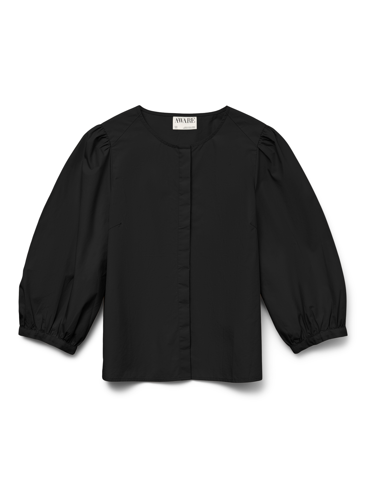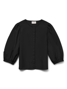 Denne fantastiske skjorten er enkel å style opp og ned, avhengig av anledningen, men vil definitivt gi deg et feminint preg. Gå for baggy jeans og høye hæler når du styler – det vil gi deg en avslappet og elegant look. - Produkttype : Poplin-skjorte - Hals : Resort-krage - Erme : 3/4 ermer - Ermer : Volumermer - Mansjetter : Mansjettknapper - Lukking : Knappelukking - Lengde/størrelse : Kort - Passform : Regular Fit