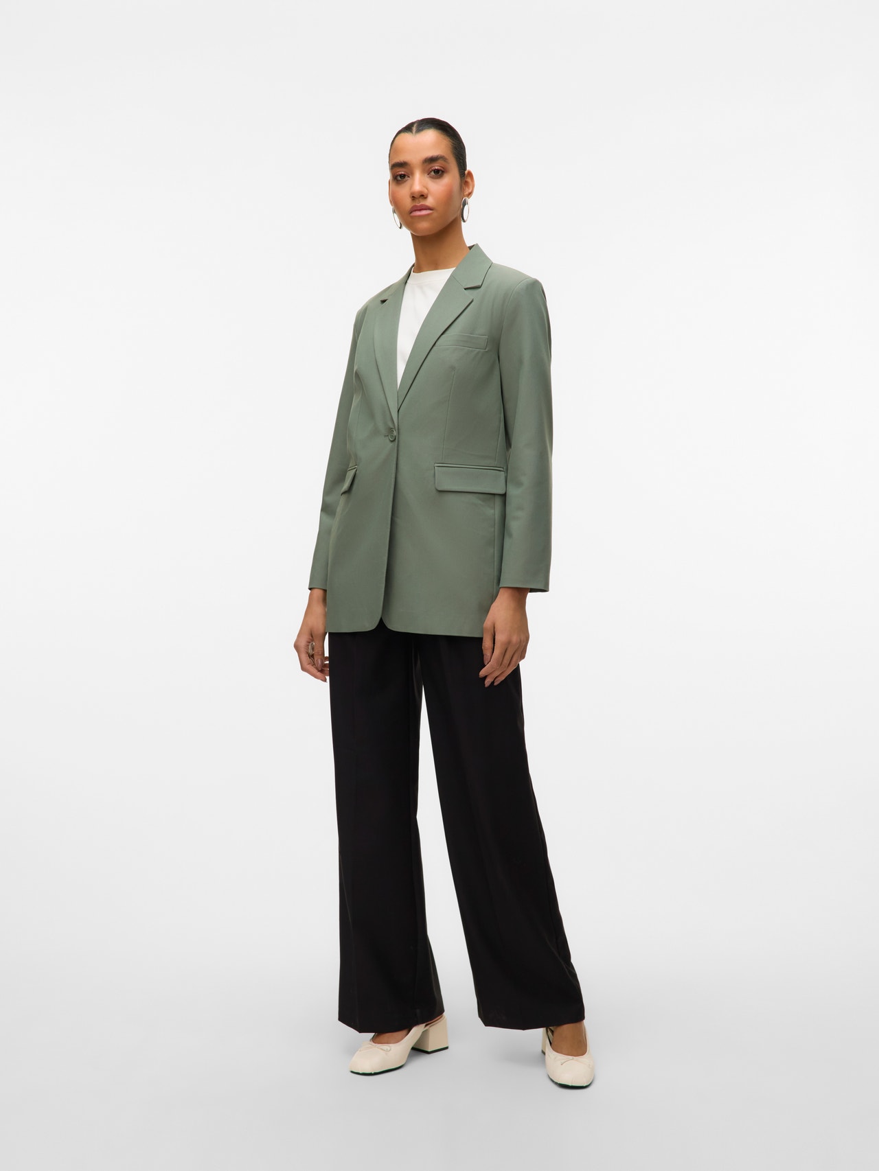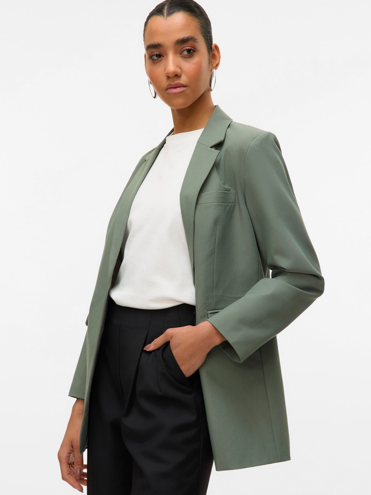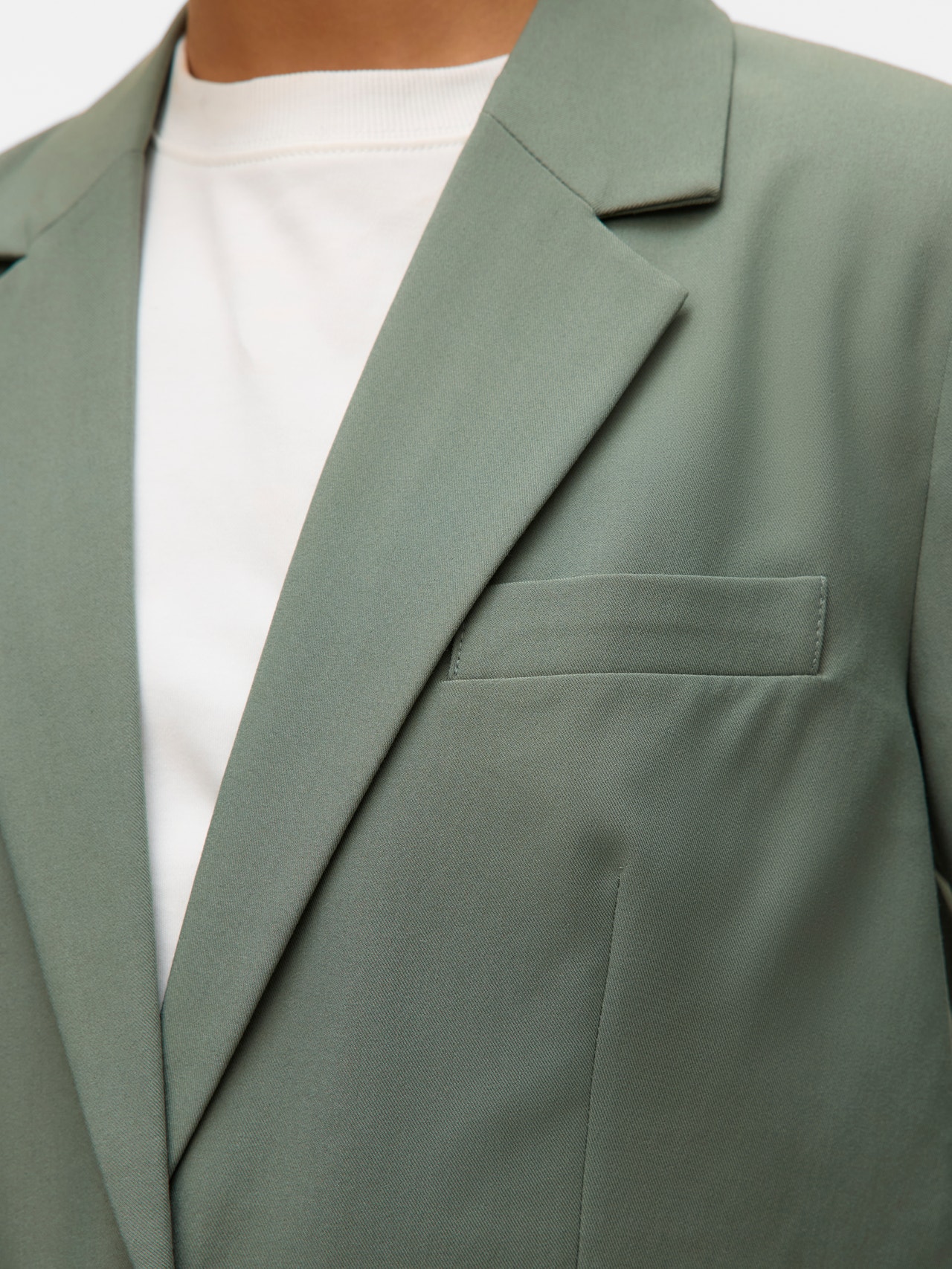 Usikker på hva du skal ha på deg? Sleng på deg en blazer. Denne blazeren er din stilige go-to. Selv når du bruker den over en ensfarget T-skjorte, tilfører blazeren alltid sin egen eleganse og stil. Style med en jeans med wide fit og høye hæler for en oppgradert hverdagslook.
