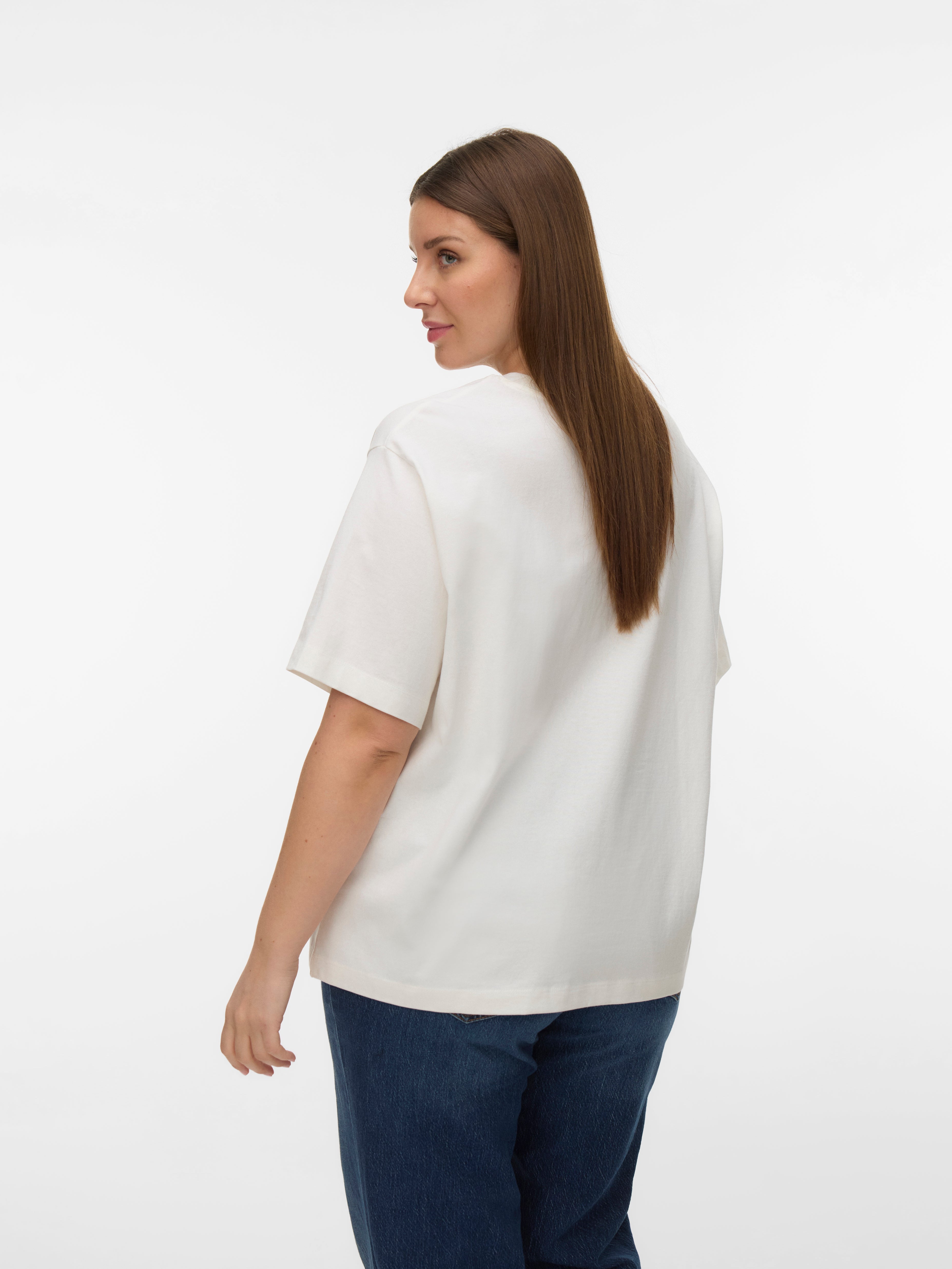 Hvis du er i tvil, bruk en T-skjorte! Du kan aldri trå feil med en T-skjorte - et perfekt valg for en kul og tidløs look. Bruk denne T-skjorten med fine kjærestejeans og legg til et par chunky joggesko for et urbant byutseende.