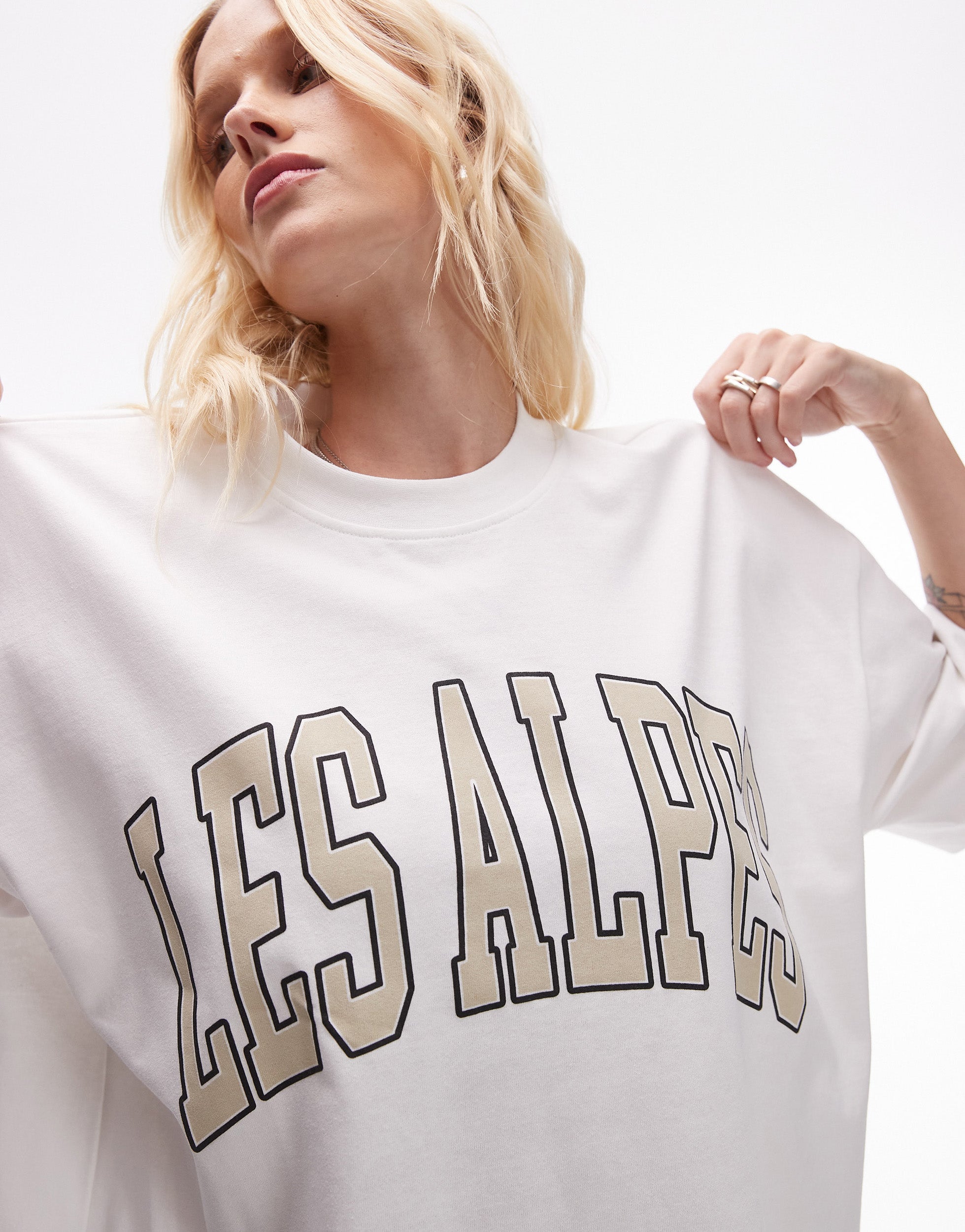 Topshop graphic premium Les Alpes oversized tee in white - WHITE