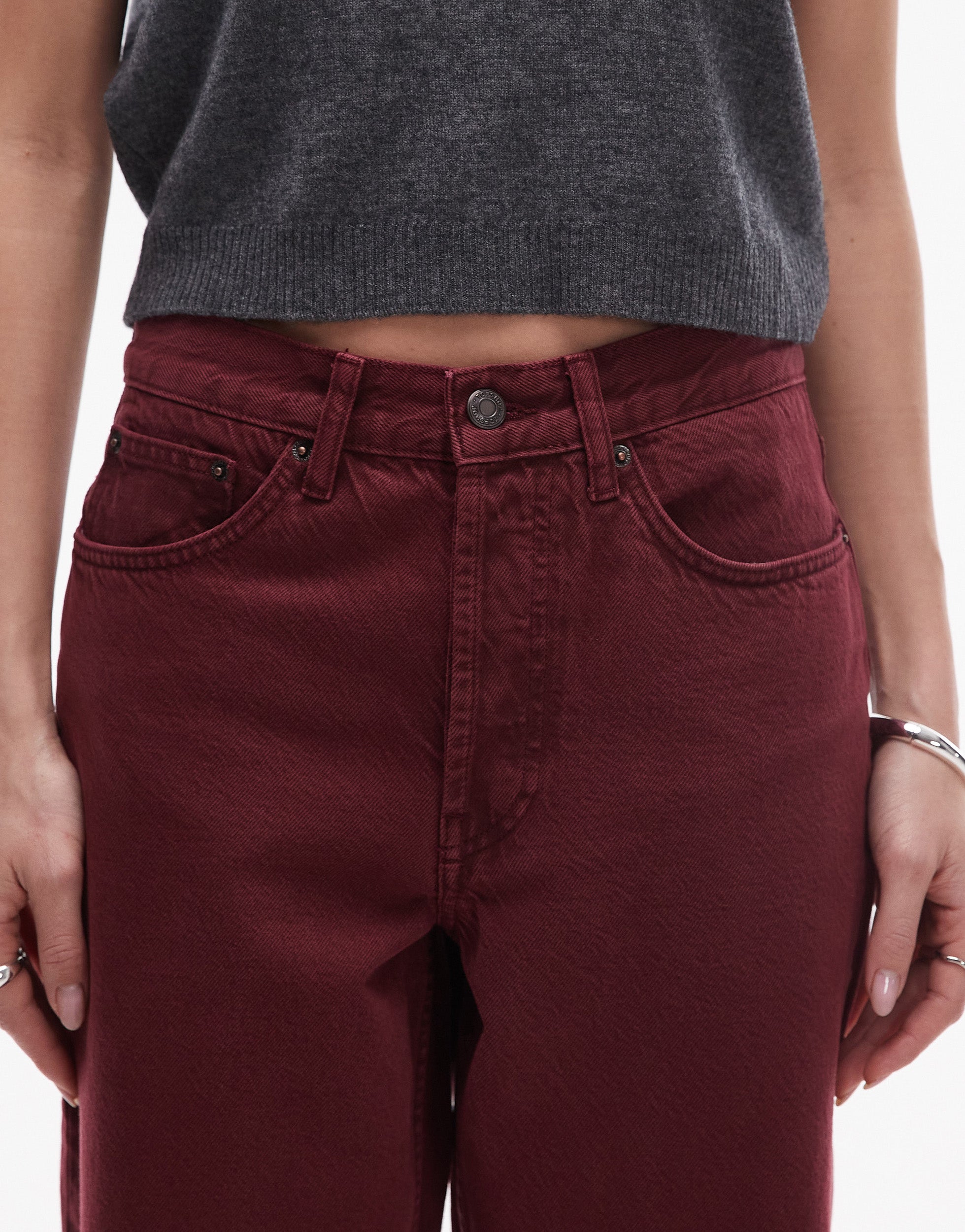 Topshop mid rise loose fit straight jeans in burgundy - BURGUNDY