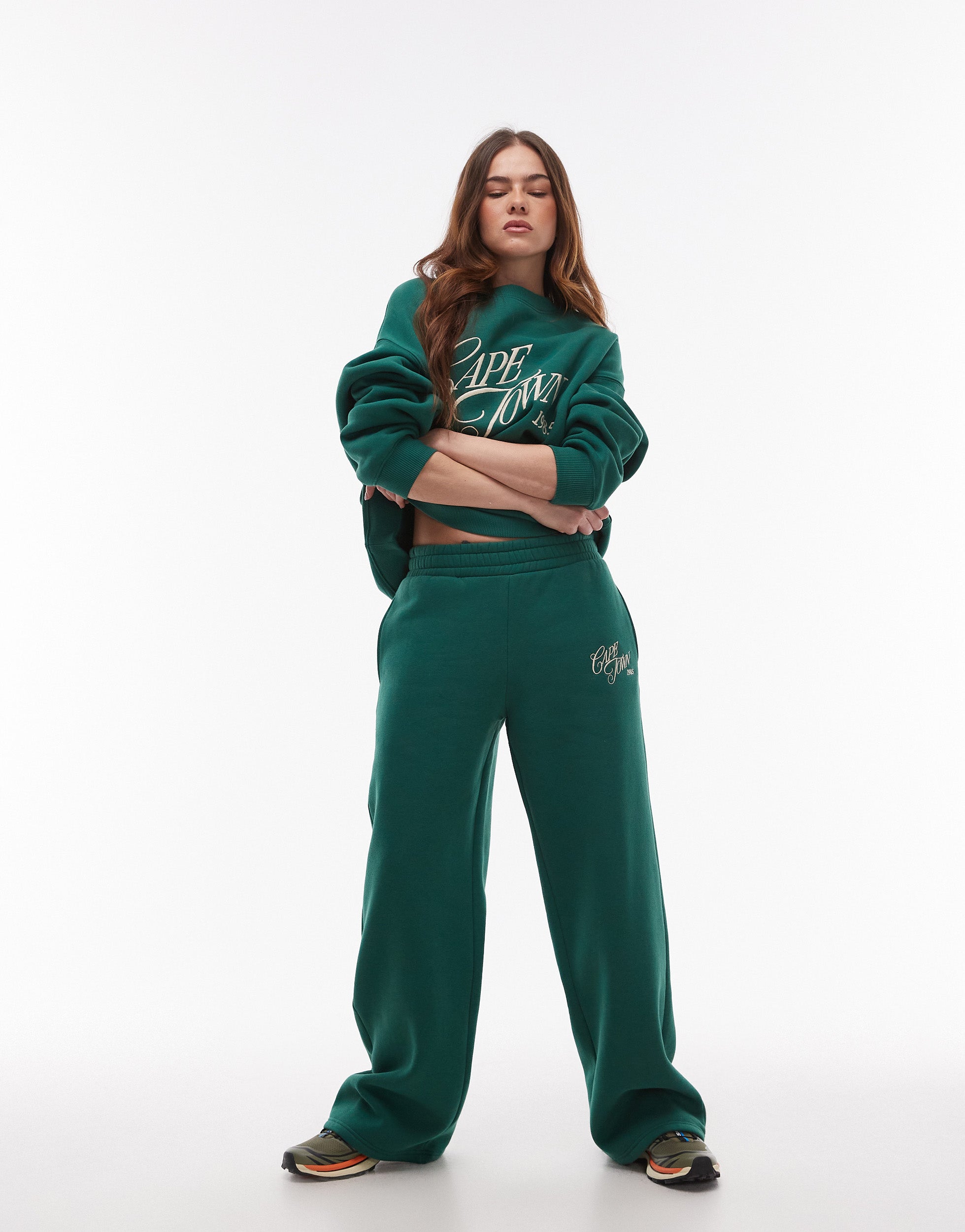 Topshop graphic cape town joggers co-ord in dark green - DGREEN