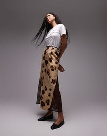 Topshop hanky hem contrast panel skirt in buttermilk and brown floral - BROWN