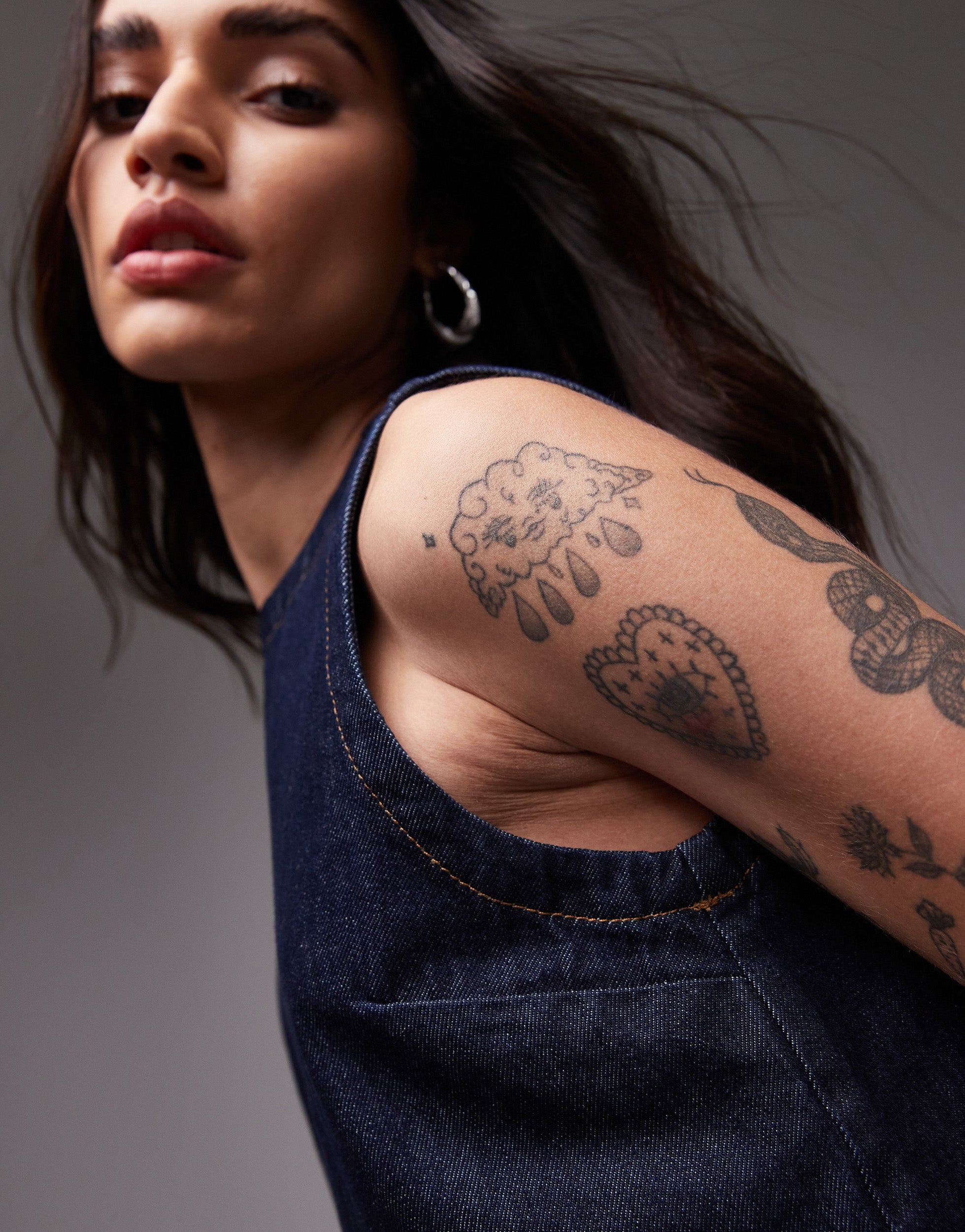 Topshop denim shell top in raw look indigo - MBLUE