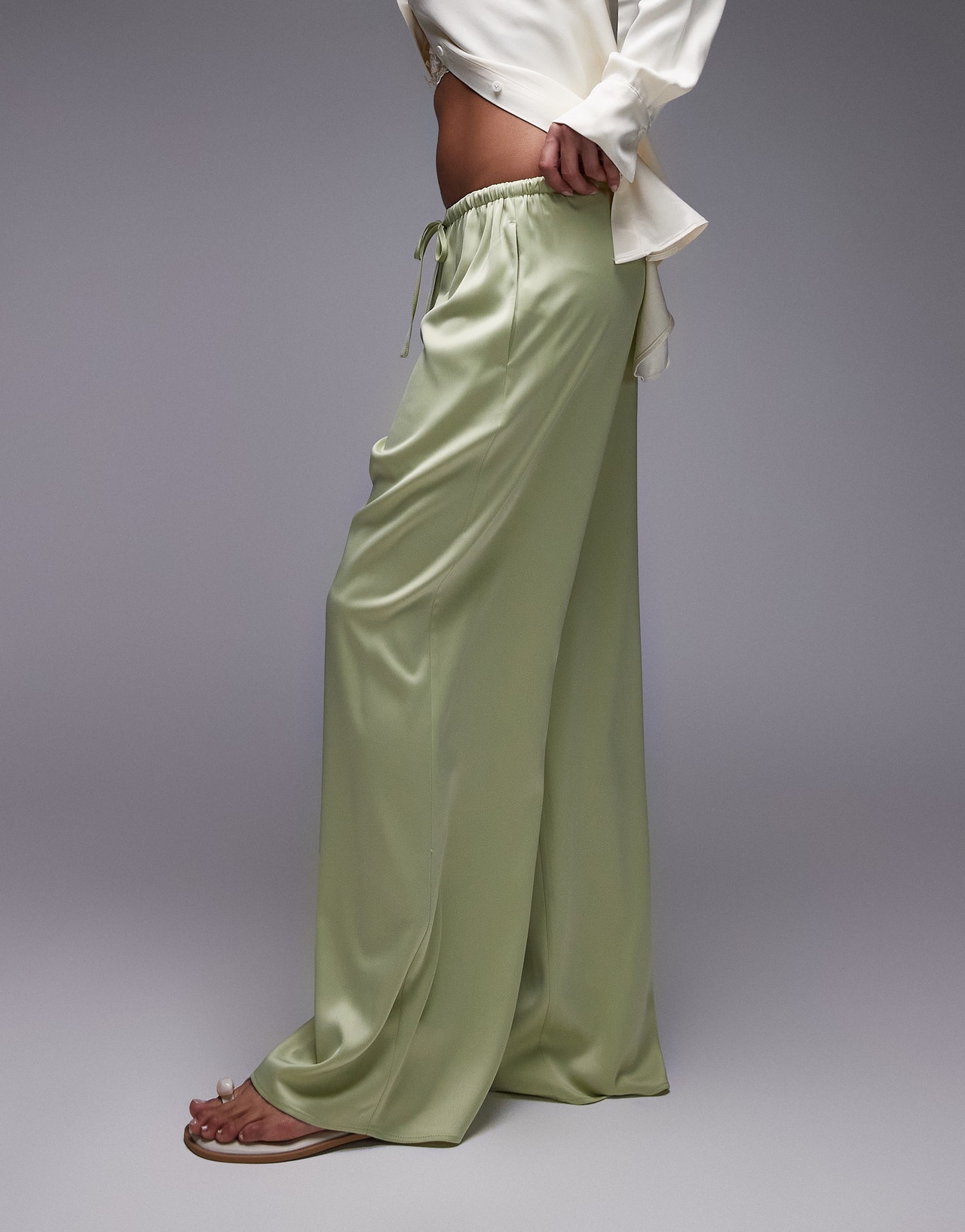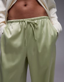 Topshop satin tie waist wide leg trouser in green - MGREEN