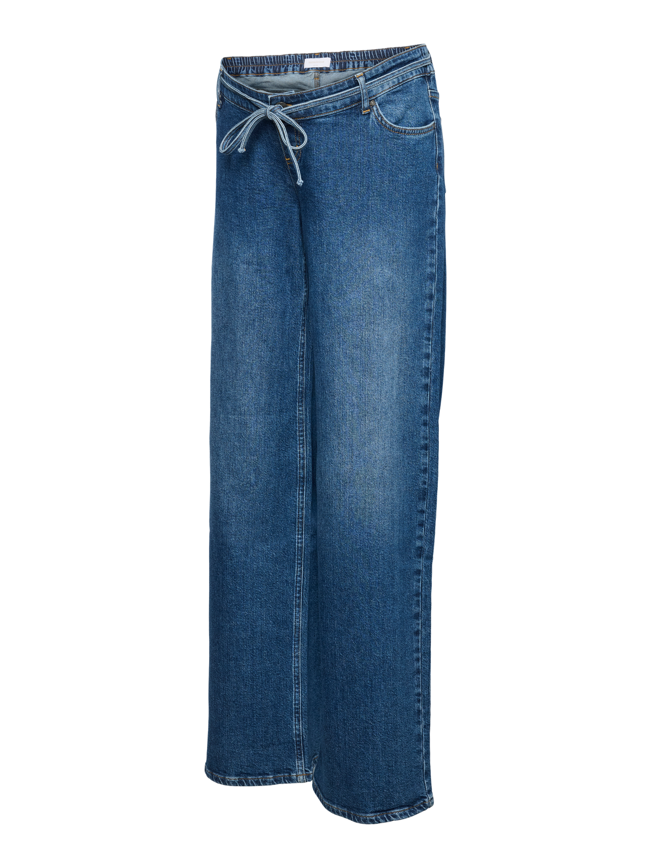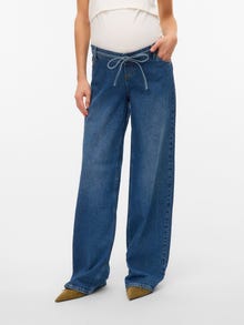 Gå for en kul look i et par mammajeans som er designet for å passe gjennom hele graviditeten og støtte magen med et elastisk magebånd. - Produkttype : Mammajeans med wide-leg - Lukking : Snøring - Lommer : Forlommer - Høyde til midje : Lav midje - Detaljer : Belte i midjen, Elastisk linning bak, Magebånd som sitter under magen for ekstra komfort - Vask/finish : Skyll for å fjerne overflødig farge for en myk, ren følelse - Passform : Denne jeansen har en trendy wide fit. - Festetype : Ufestet belte