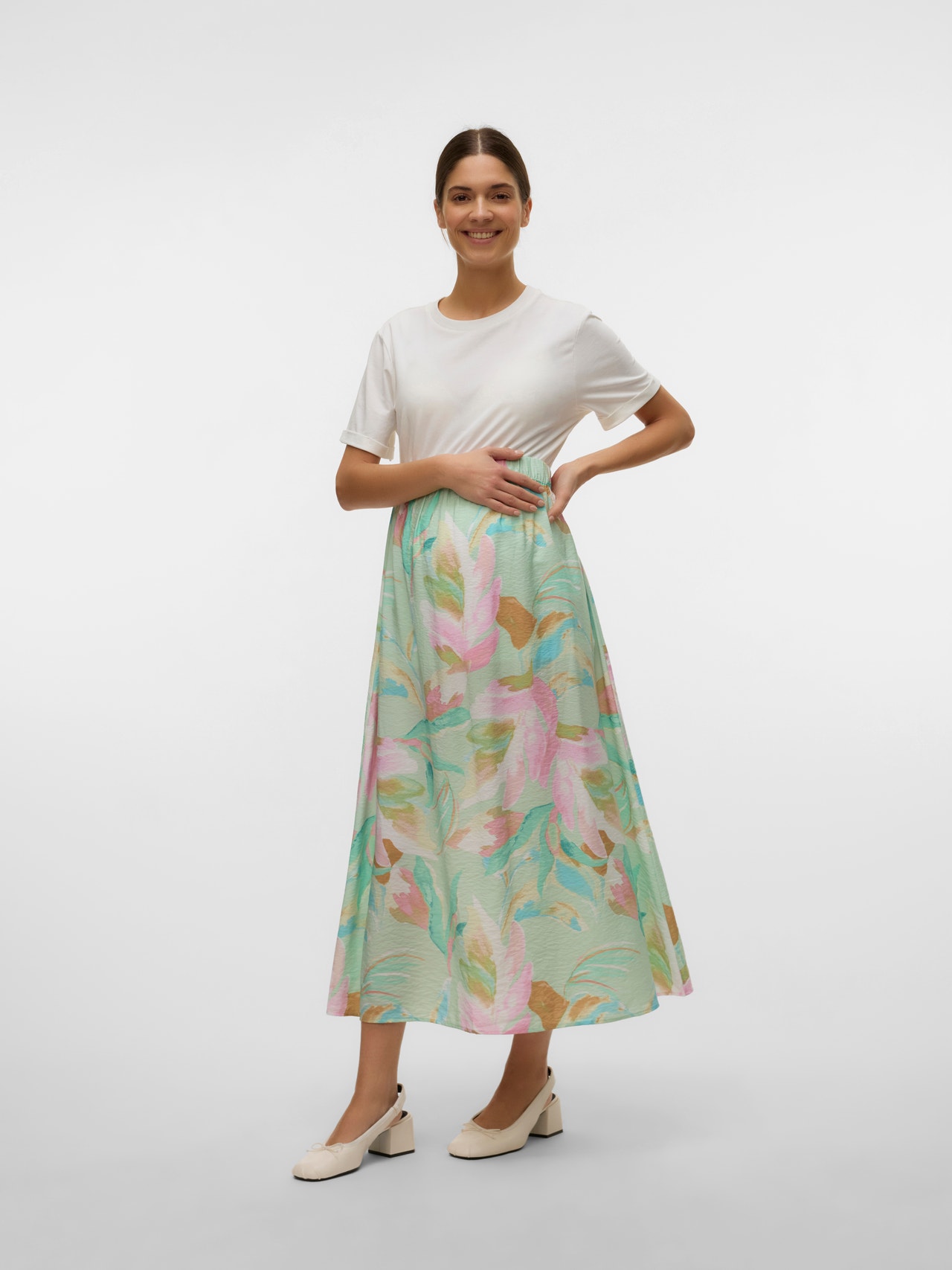 Style dine favorittopper og -skjorter med et kult skjørt som passer perfekt rundt din voksende make og skaper en behagelig og luftig look som passer til enhver anledning.