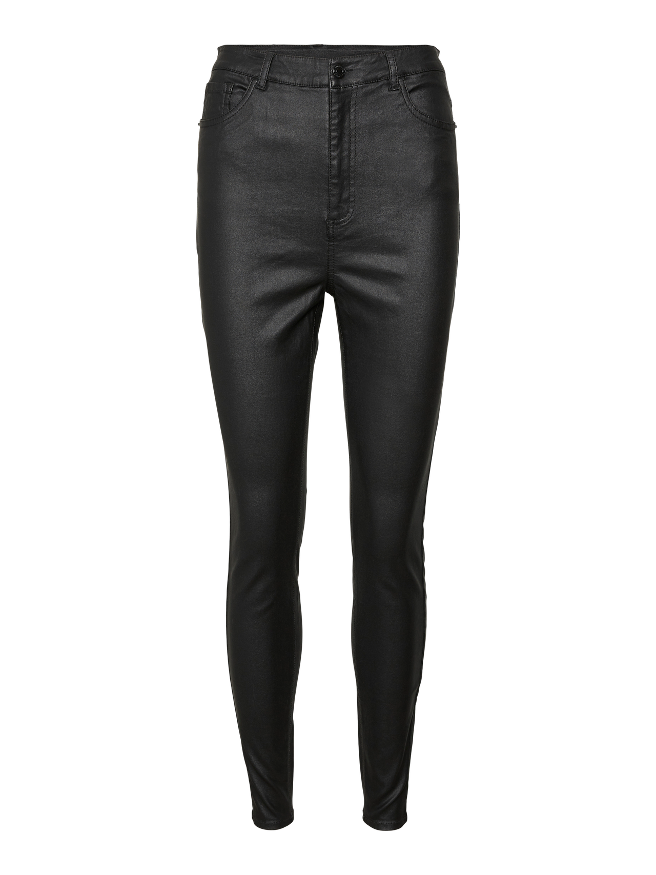 Geef je garderobe een upgrade met dit tijdloze icoon. Broeken zijn de verfijnde toevoeging aan jouw look. Combineer dit met een blouse en laarzen met hakken voor een chique, alledaagse look die ook perfect is voor kantoor. Ben je meer in de stemming voor een relaxte look? Draag het simpelweg met een klassiek T-shirt en gave sneakers. - Producttype : Broek met 5 zakken - Sluiting : Gulp met rits - Zakken : Achterzakken, Voorzakken - Taille : Extra hight waist - Lengte/maat : Volledige pijp - Wassing/Afwerking : Gecoat effect - Pasvorm : Skinny fit