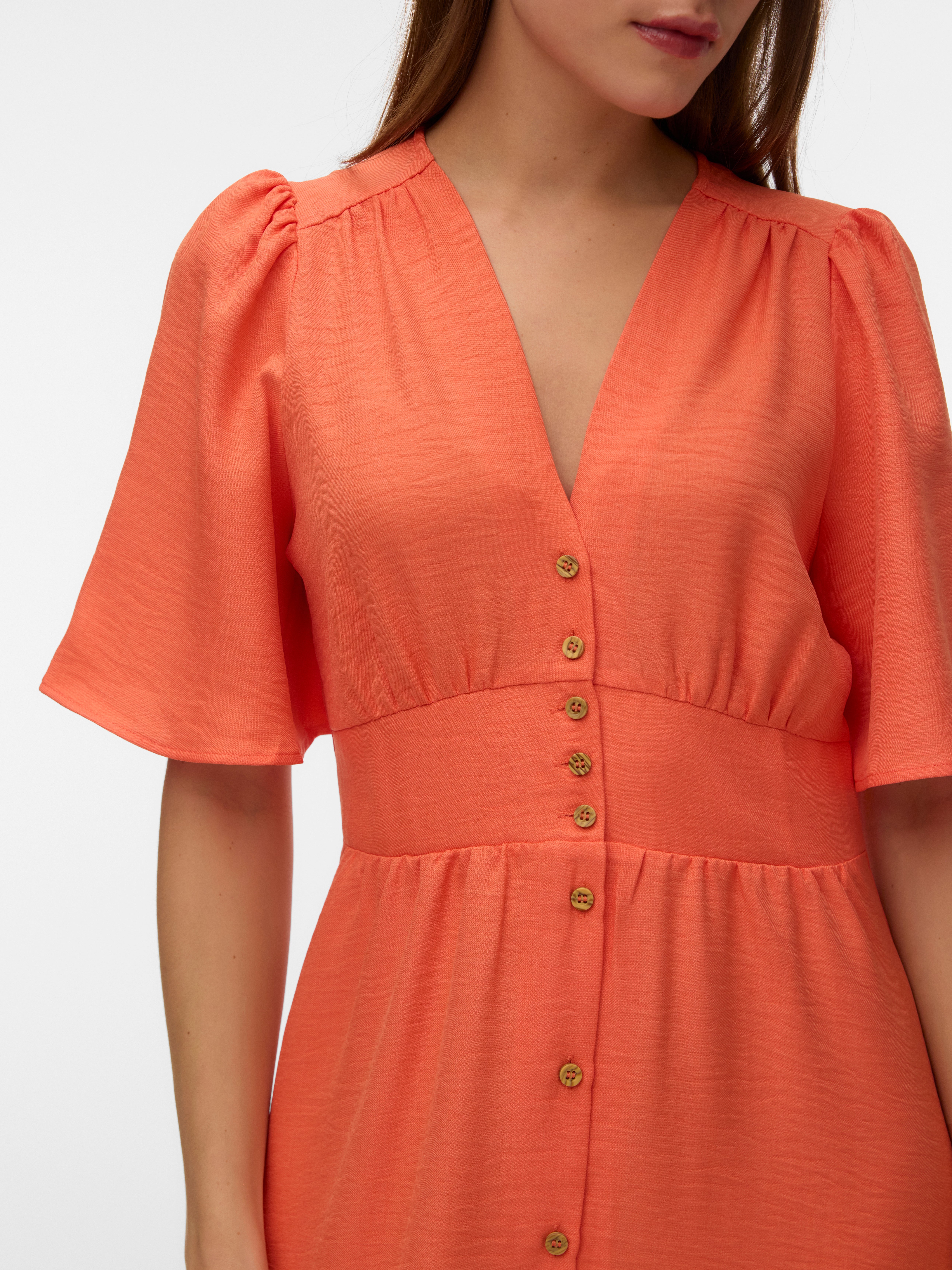 - Details : Knoop detail, Naad bij de taille, Elastische taille, Gesmokt detail