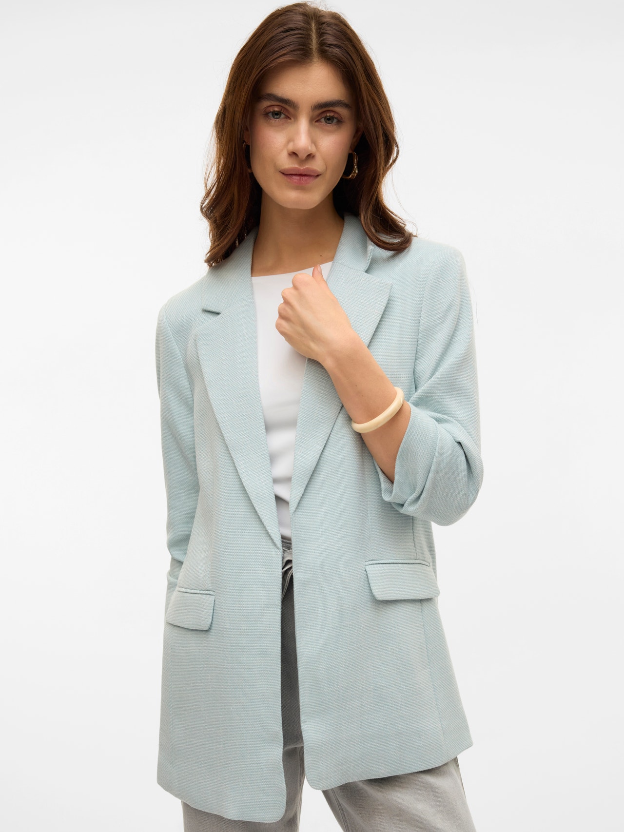 Weet je niet wat je moet dragen? Ga voor een blazer. Deze blazer is jouw stijlvolle favoriet. Het maakt niet uit of je het met een top of T-shirt combineert - de blazer maakt elke outfit op een verfijnde manier af. Draag het met jeans en schoenen met hakken voor een prachtige alledaagse look. - Producttype : Blazer - Hals : Omkeerbaar - Zakken : Voorzakken - Details : Kreuk detail - Pasvorm : Regular fit