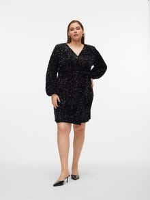 Elk feest heeft de juiste feestjurk nodig. Met deze prachtige jurk kom je in no time in de feeststemming. Combineer het met hoge hakken en je favoriete accessoires voor een spectaculaire feestlook. Curve items zijn ontworpen voor curvy vrouwenlichamen.. - Producttype : Feestjurk - Hals : V-Hals - Mouw : Lange mouwen - Mouwen : Normale mouwen - Manchetten : Manchetten met elastiek - Lengte/maat : Kort - Details : Naad bij de taille, Decoratiewikkel - Lichaamstype : Curve - Pasvorm : Regular fit
