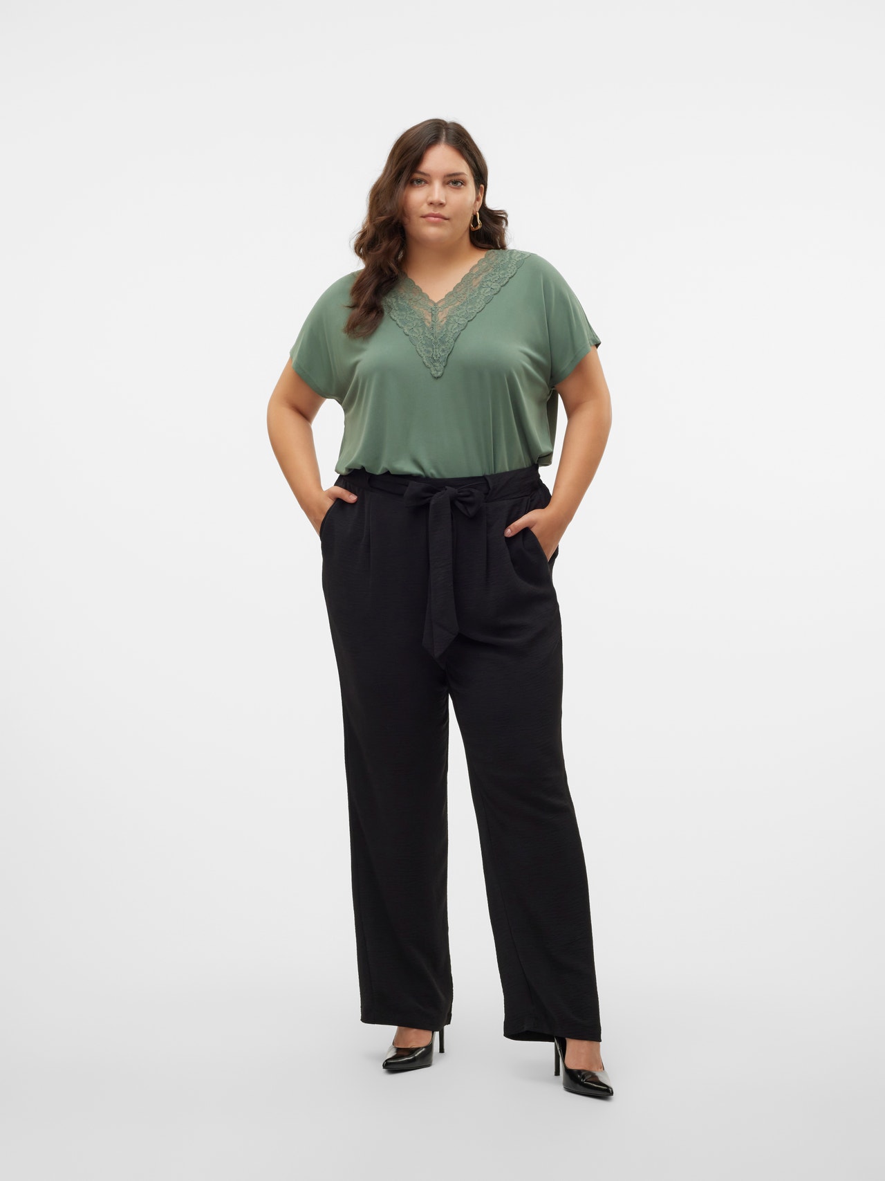 Wide fit broeken blijven altijd een klassieker in onze garderobe en daar worden we blij van. Het zijn echte go-to favorieten die je hele garderobe samenbinden en je verliefd zullen maken op de pasvorm met wijde pijpen. Combineer het met sneakers en een oversized blouse voor een gave alledaagse look, of ga voor een crop top en laarzen met hakken voor een avondje uit. Curve items zijn ontworpen voor curvy vrouwenlichamen.. - Producttype : Broeken - Zakken : Zijzakken - Details : Riem in de taille - Pasvorm : Wide leg fit - Samenstelling van accessoire : Polyester