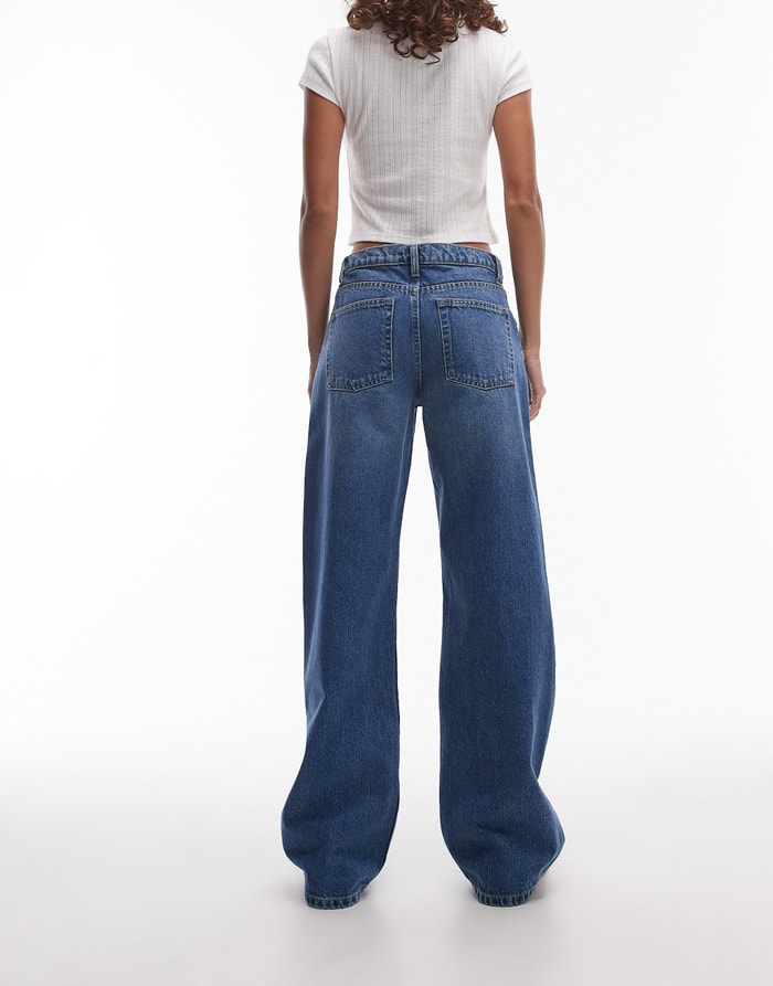 Topshop Ember low rise wide leg jeans in mid blue - MBLUE