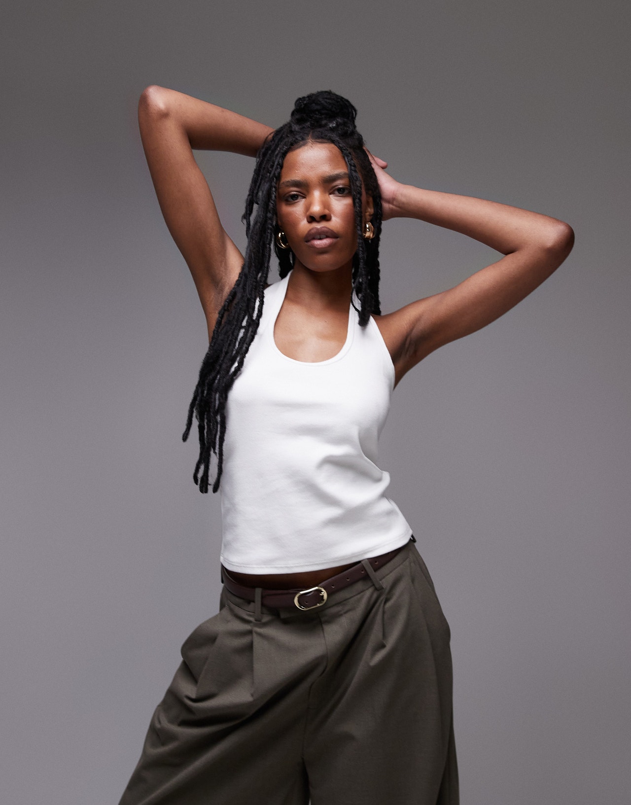Topshop rib halter top in white - WHITE