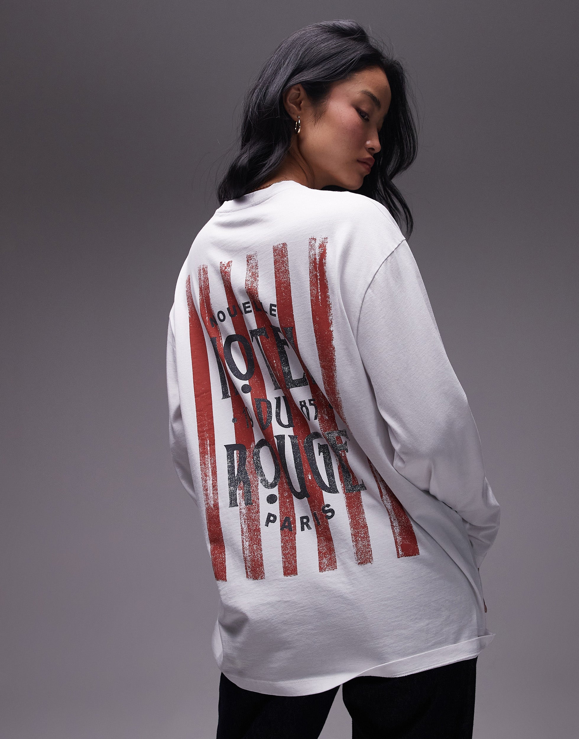 Topshop graphic hotel rouge long sleeve skater tee in white - STONE